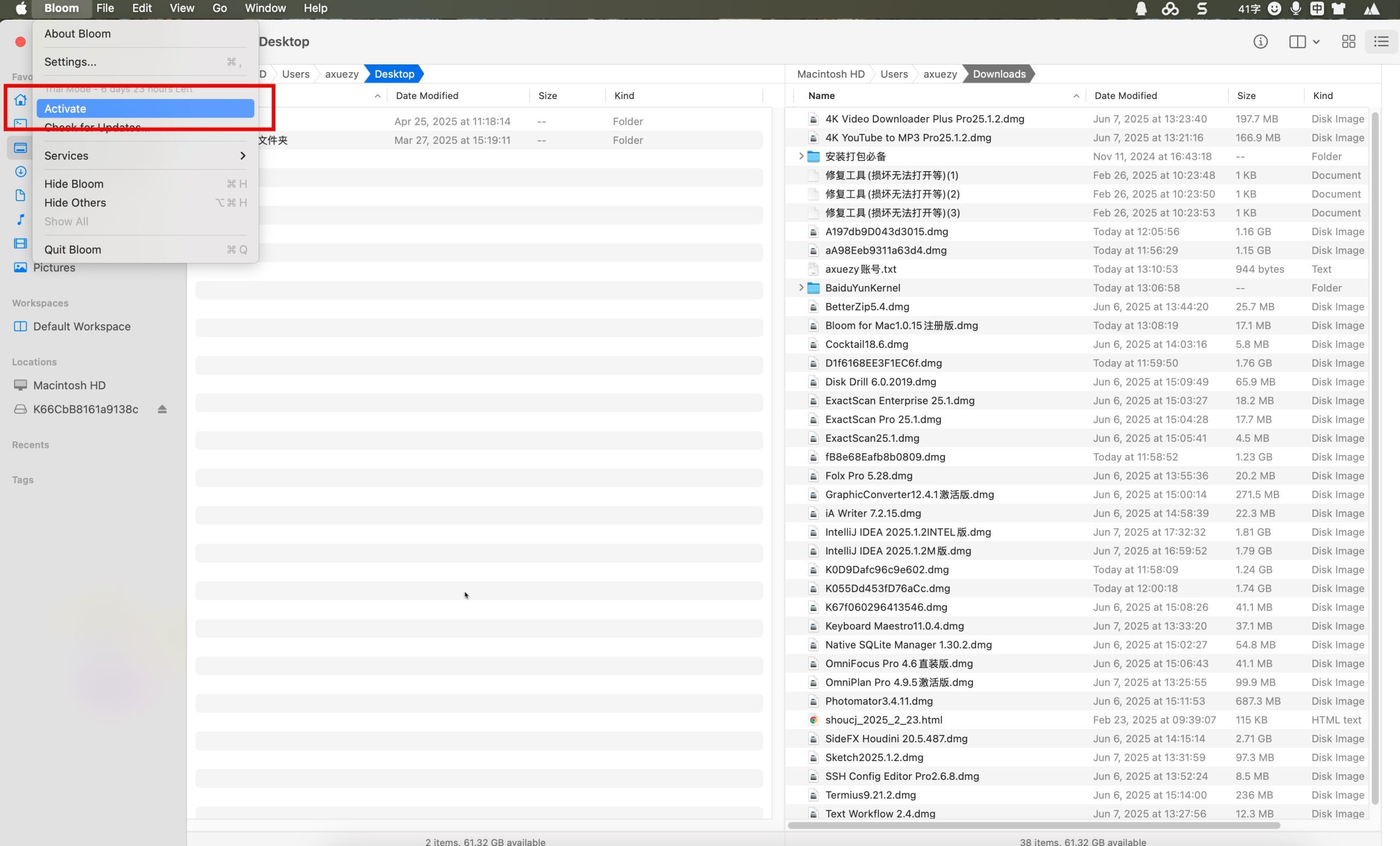 打开安装包拖动安装后,打开软件,在菜单栏点击Bloom-Activate