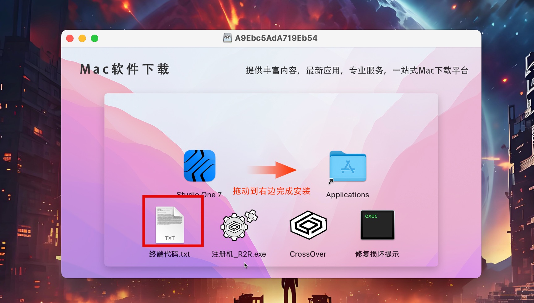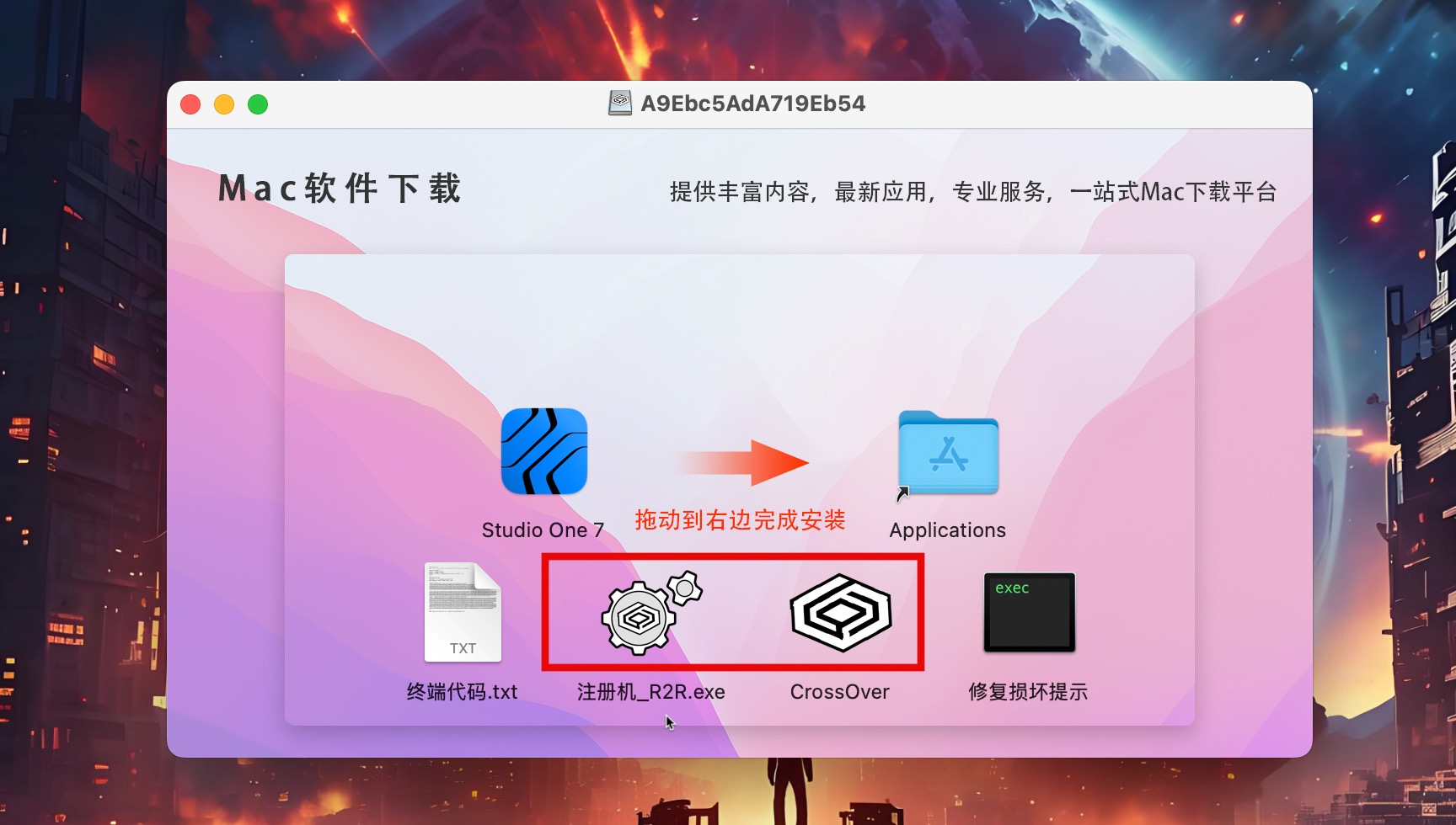 返回StudioOne 的安装包,将注册机和CrossOver拖动到桌面