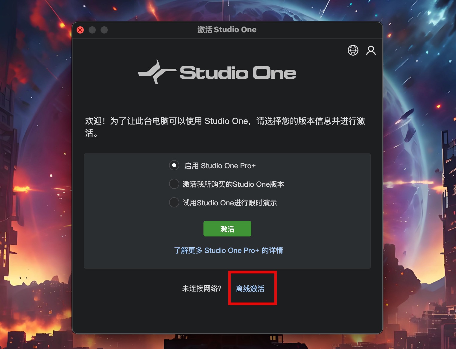 弹出Studio One 激活码,不要关闭,先放置一旁即可。