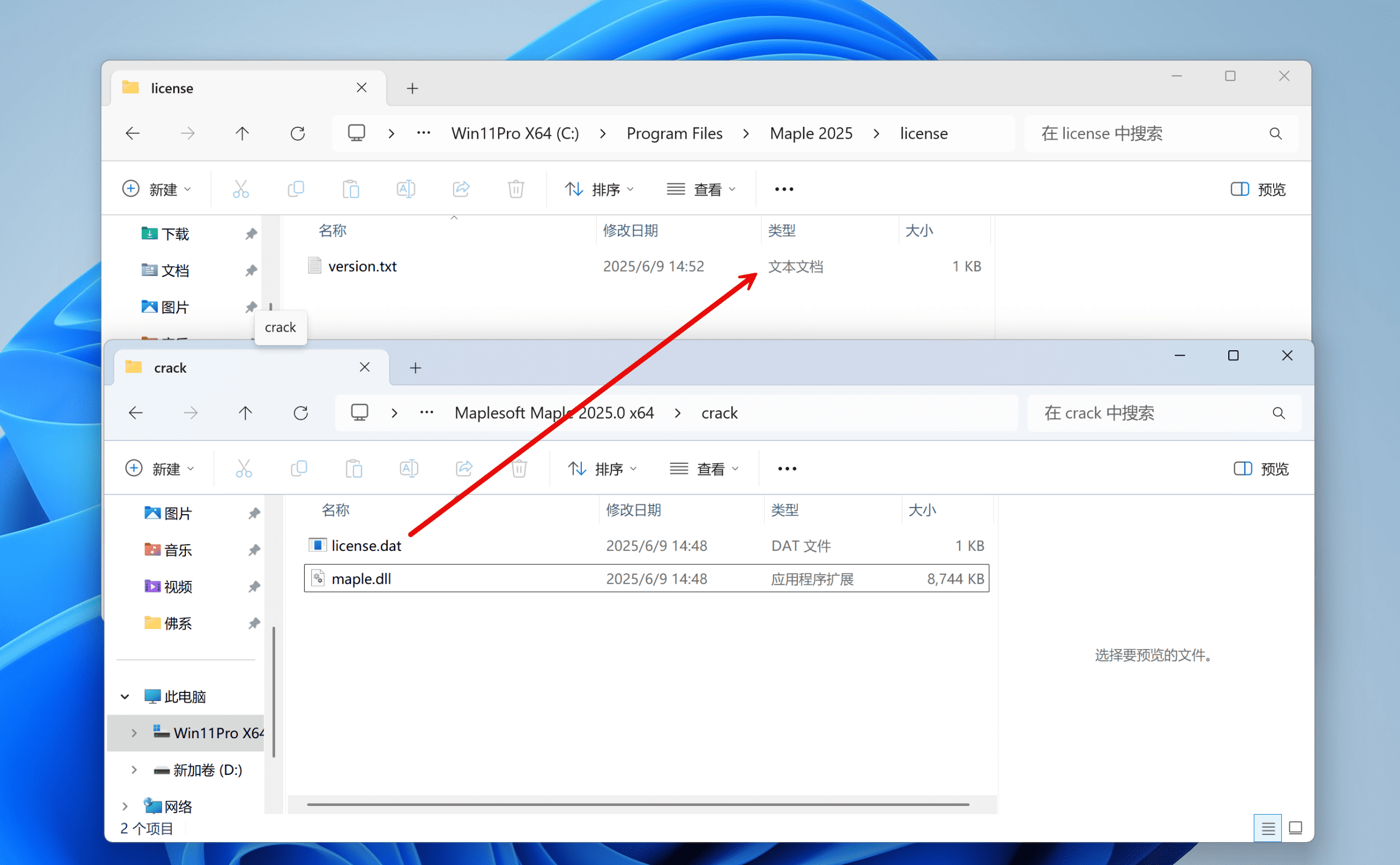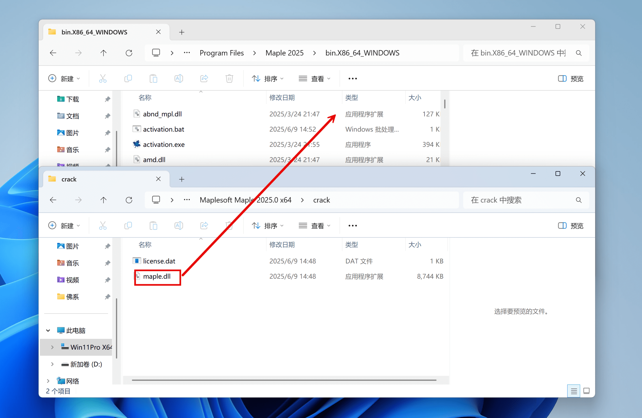 将license.dat复制到C:\Program Files\Maple 2025\license