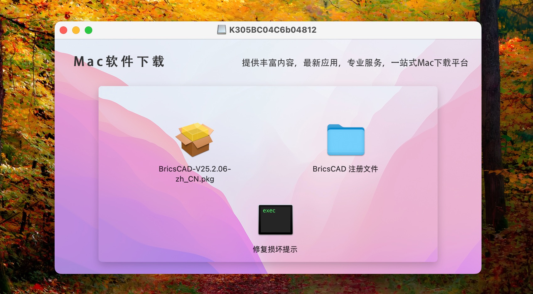 软件下载完成后打开,双击BricsCAD.pkg进行安装