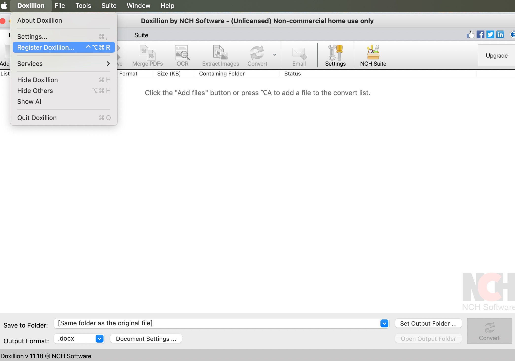 打开Doxillion Plus,点击菜单栏里的Register Doxilllion…