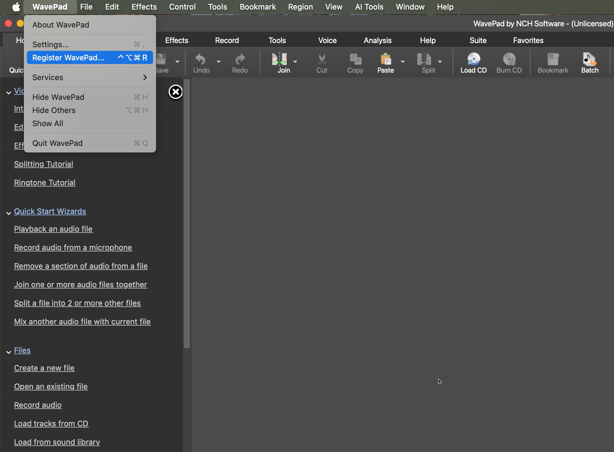 打开NCH WavePad Mater,点击菜单栏里的registrar VideoPad
