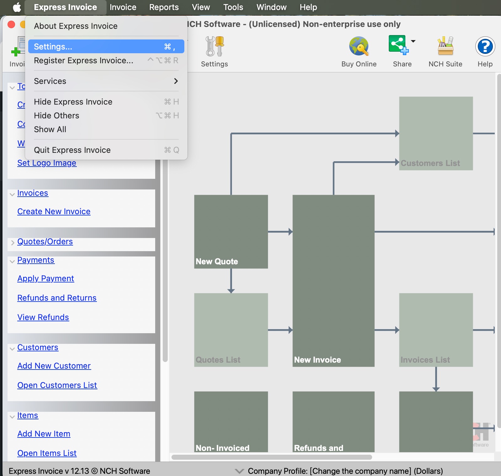 运行Express Invoice mac版,在菜单栏找到Registrar Express Invoice…
