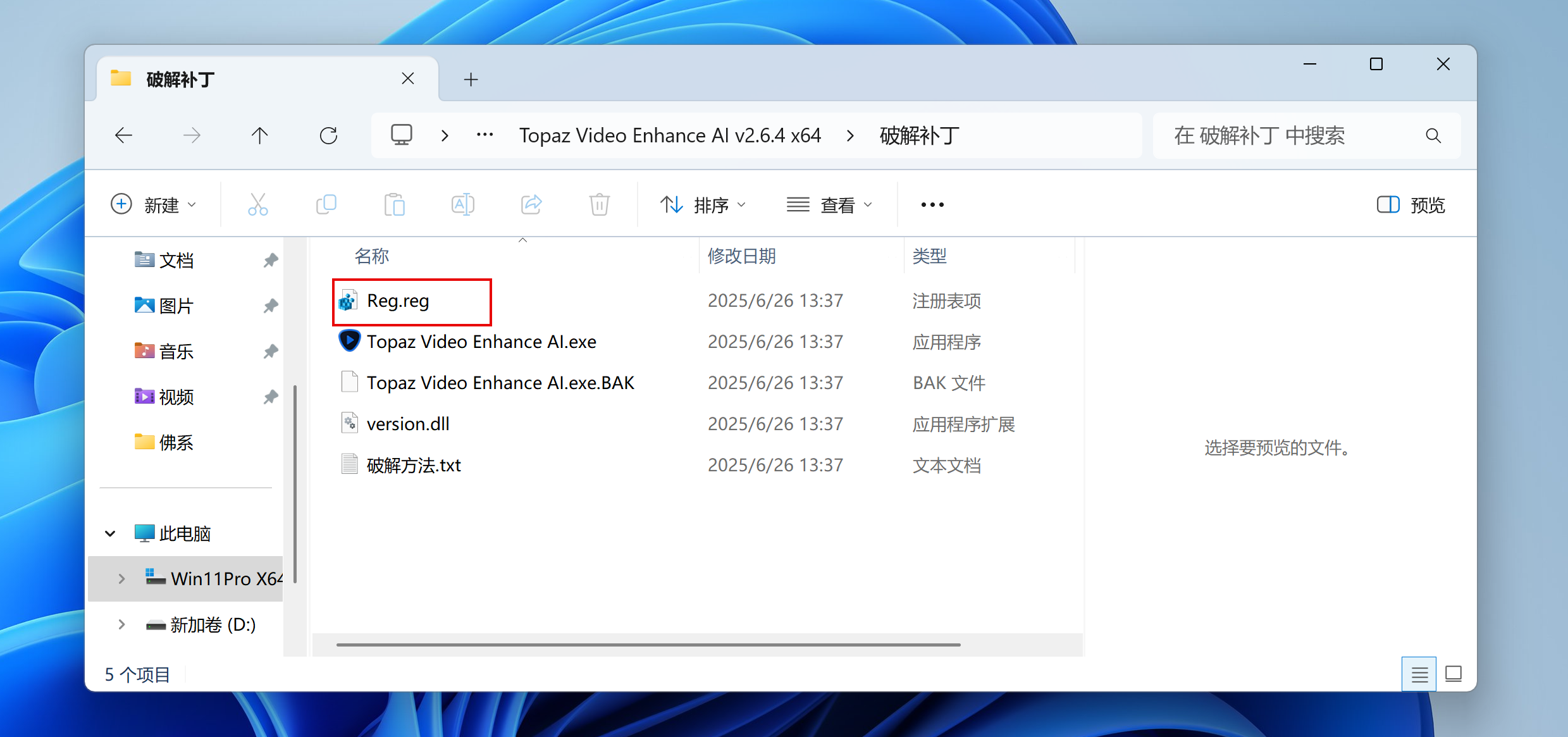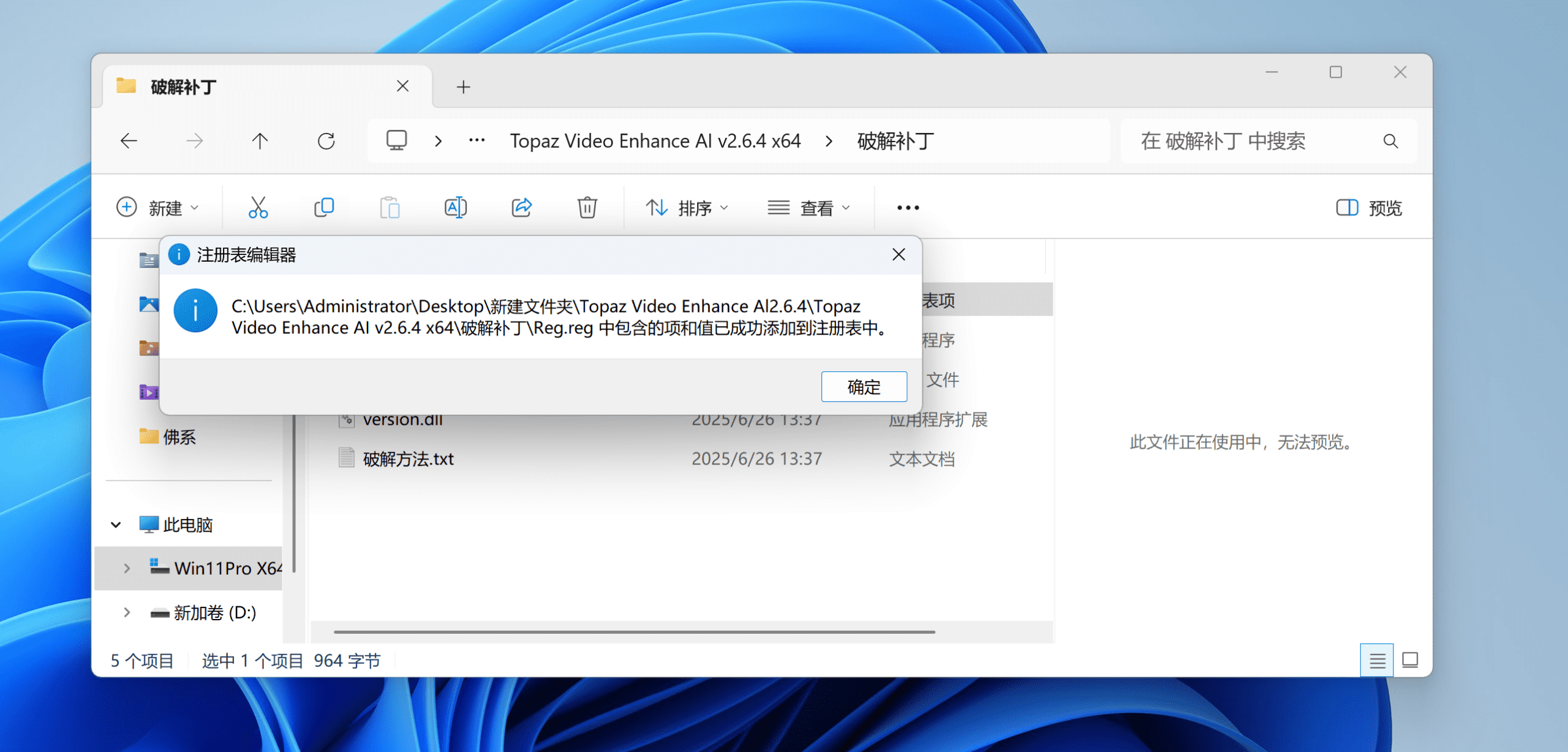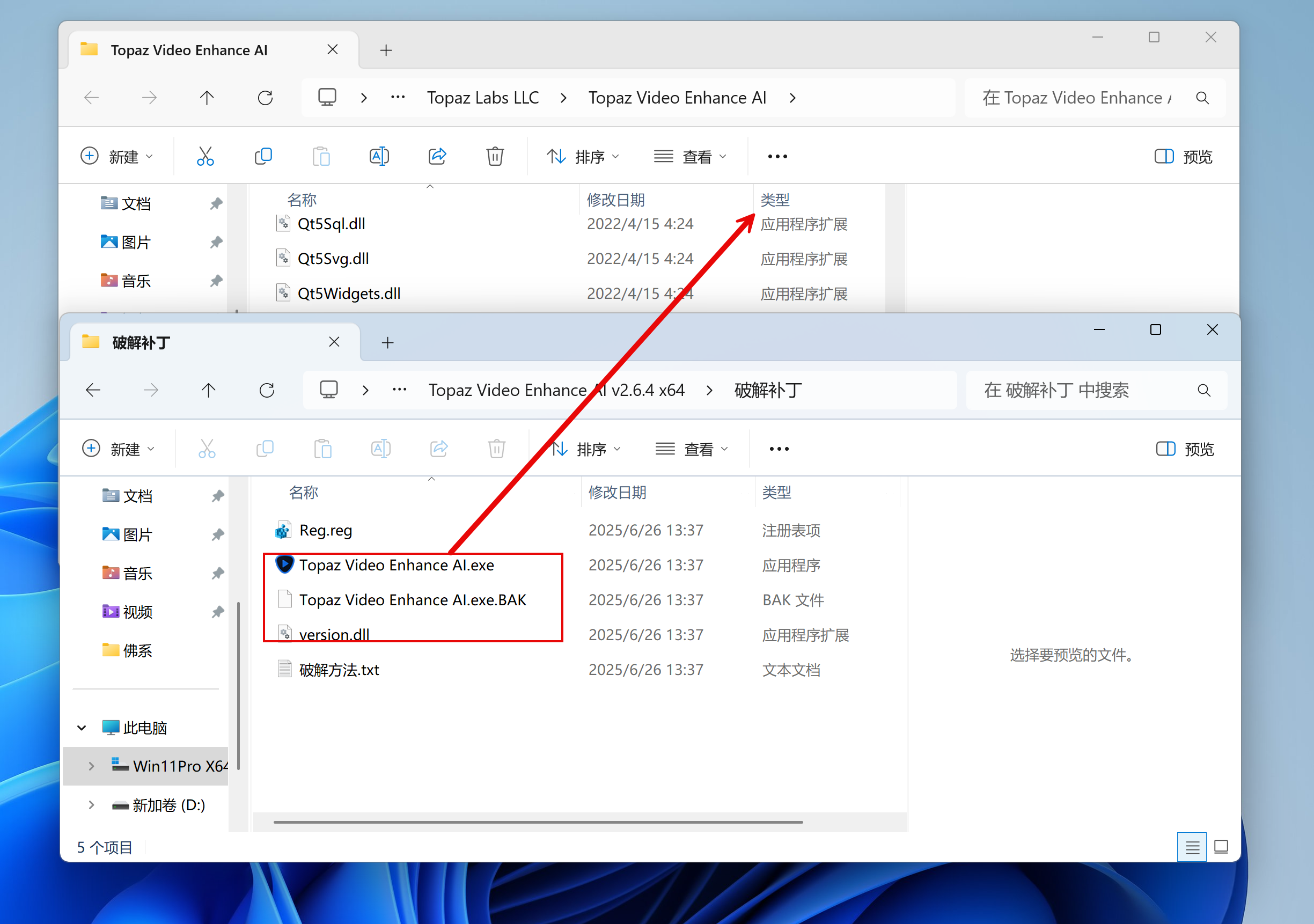 打开crack文件夹,将version.dll、Topaz Video Enhance AI.exe、Topaz Video Enhance AI.exe.BAK复制到安装根目录C:\Program Files\Topaz Labs LLC\Topaz Video Enhance AI(默认地址)