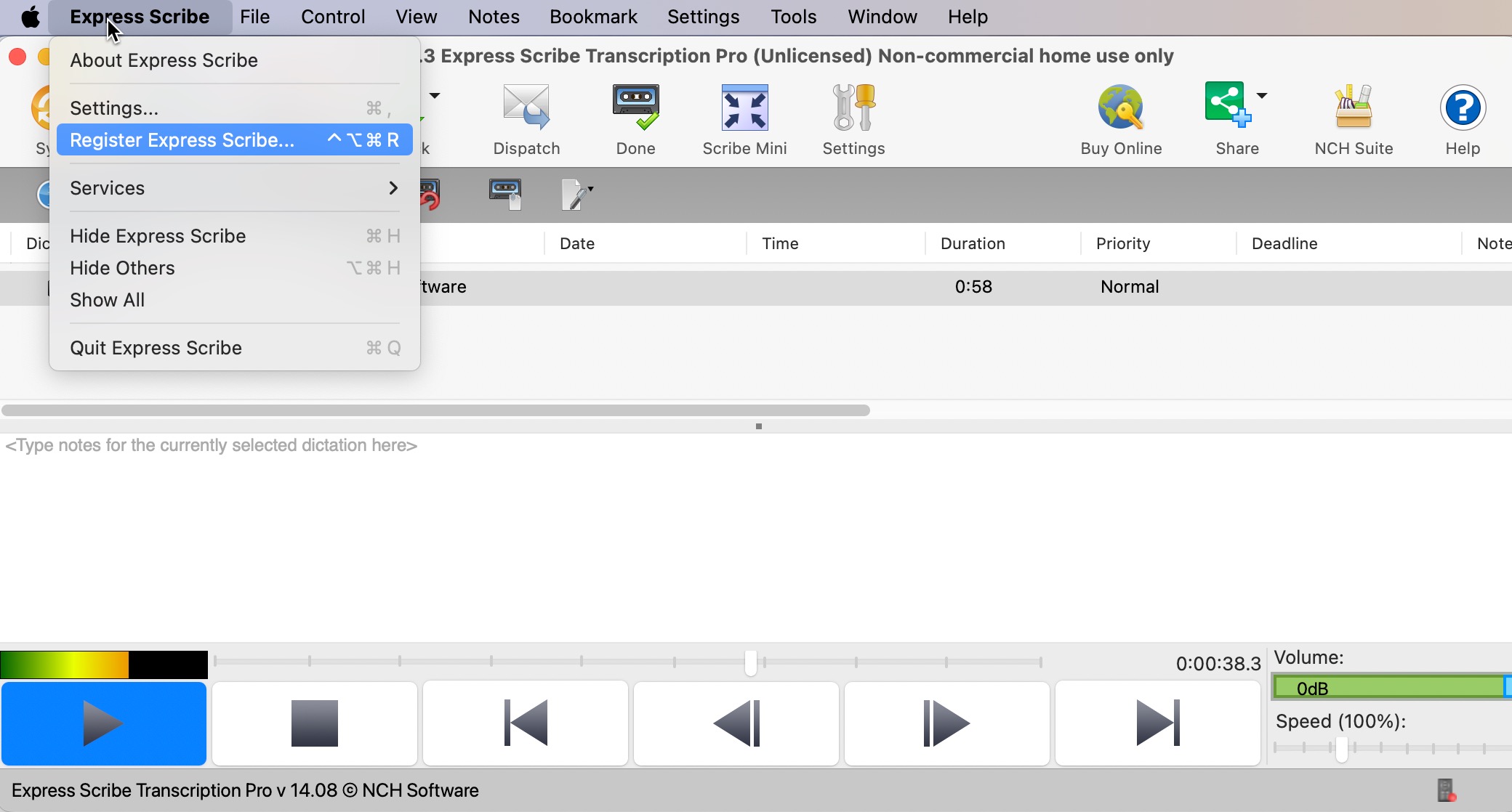 ExpressScribe PRO for Mac 是一款专业音频转录软件,支持多种音频格式(包括MP3、WAV、AIFF等),提供变速播放、音调控制、快捷键操作等功能,帮助用户高效完成听写工作。其直观的界面与多轨播放、脚控支持、时间戳标记等高级特性,尤其适合记者、律师、医生等专业人士。与云端存储及听写设备兼容,提升工作流效率,是Mac用户转录音频的理想工具。