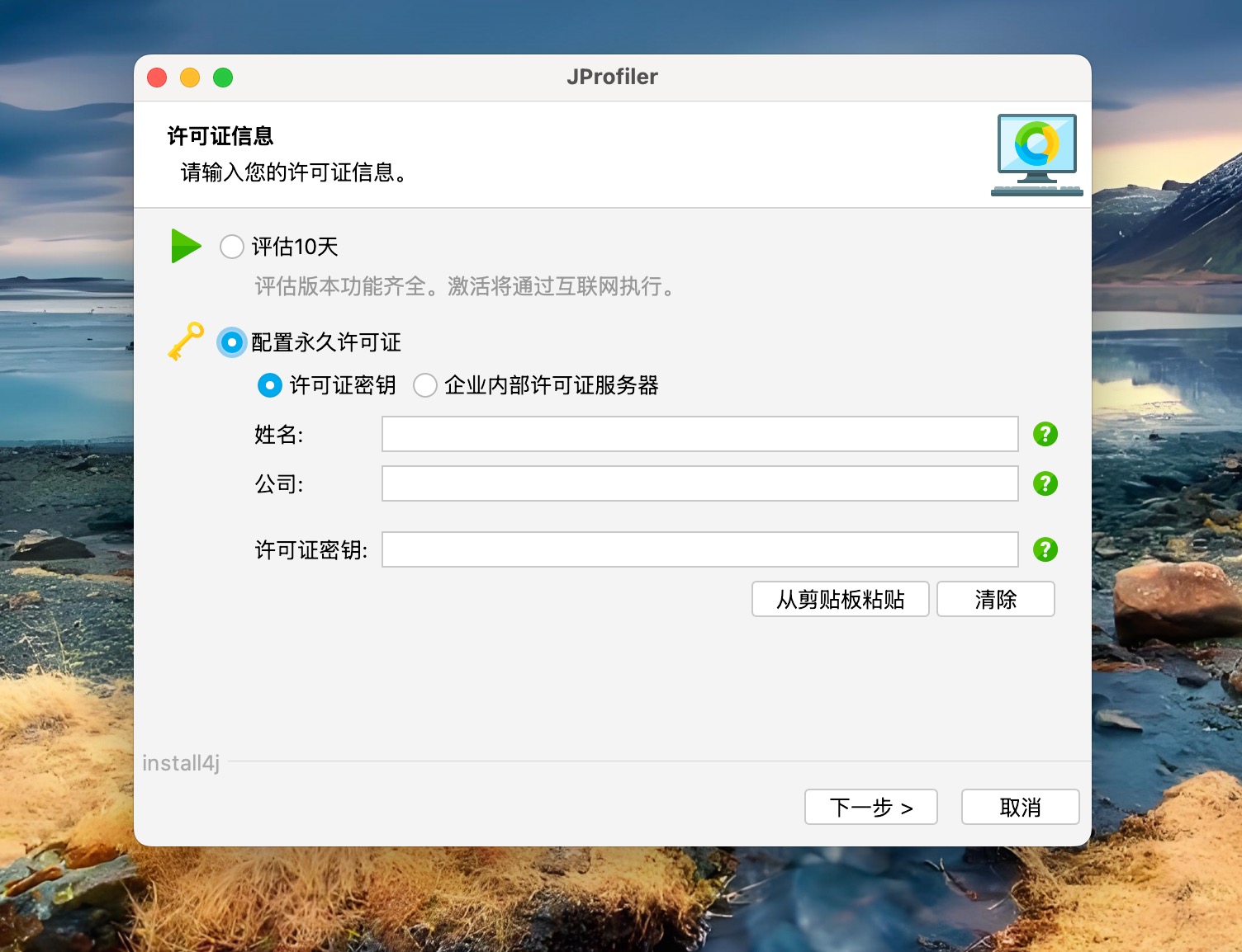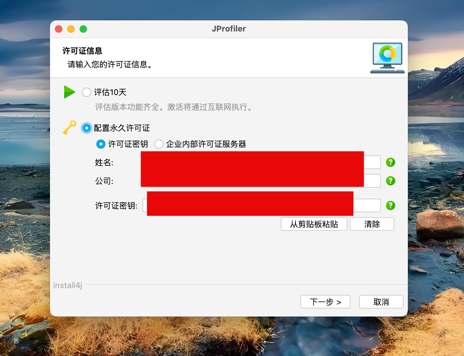 打开软件包中的JProfiler注册码,把JProfiler 注册码输入到软件对应的位置,点击next即可成功破解