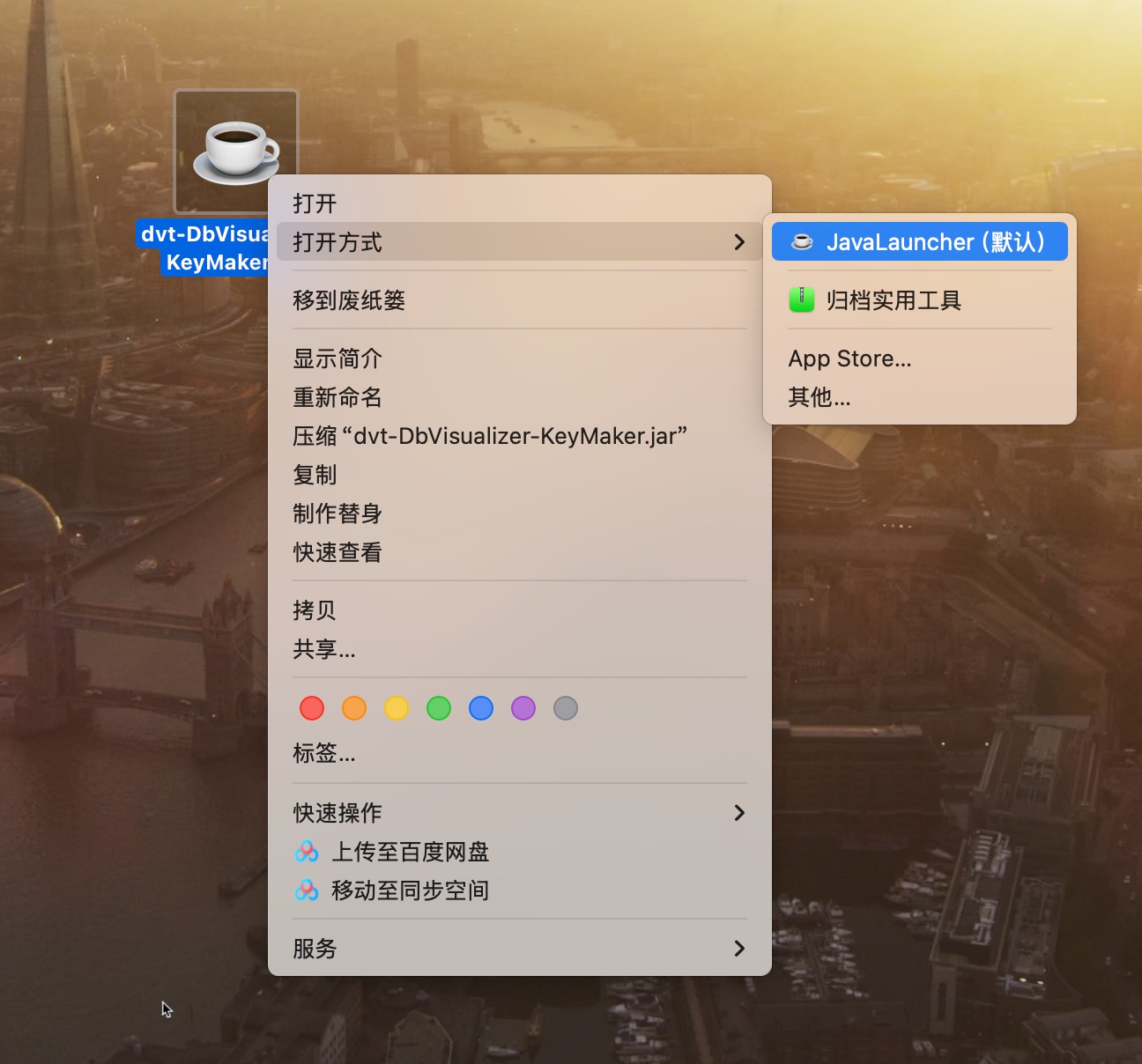 鼠标右键dvt-DbVisualizer-KeyMaker.jar,打开方式选择 JavaLauncher.app