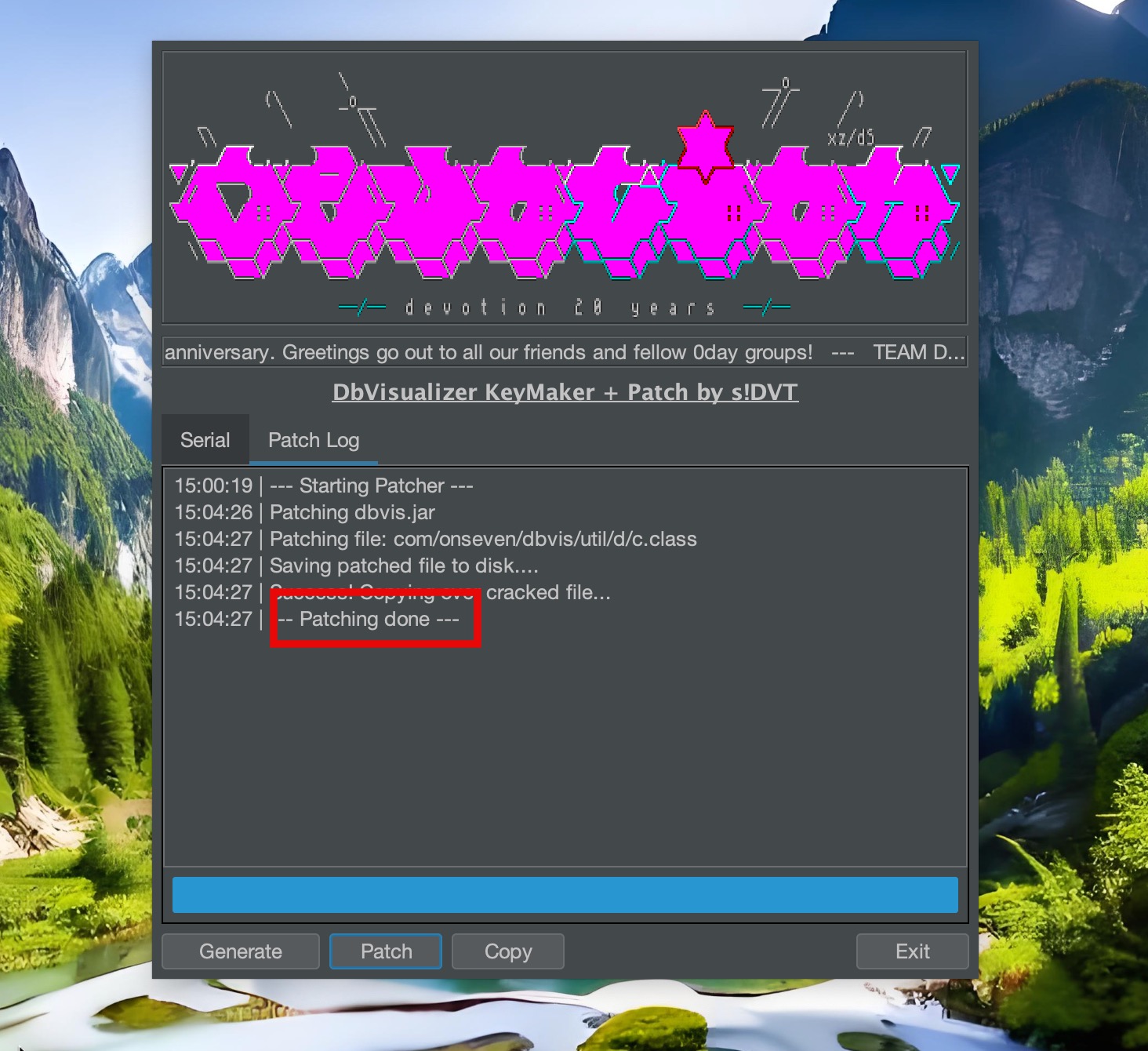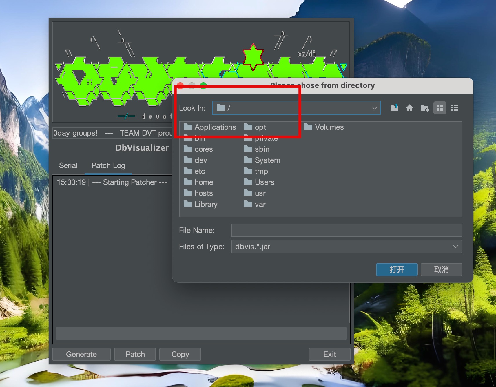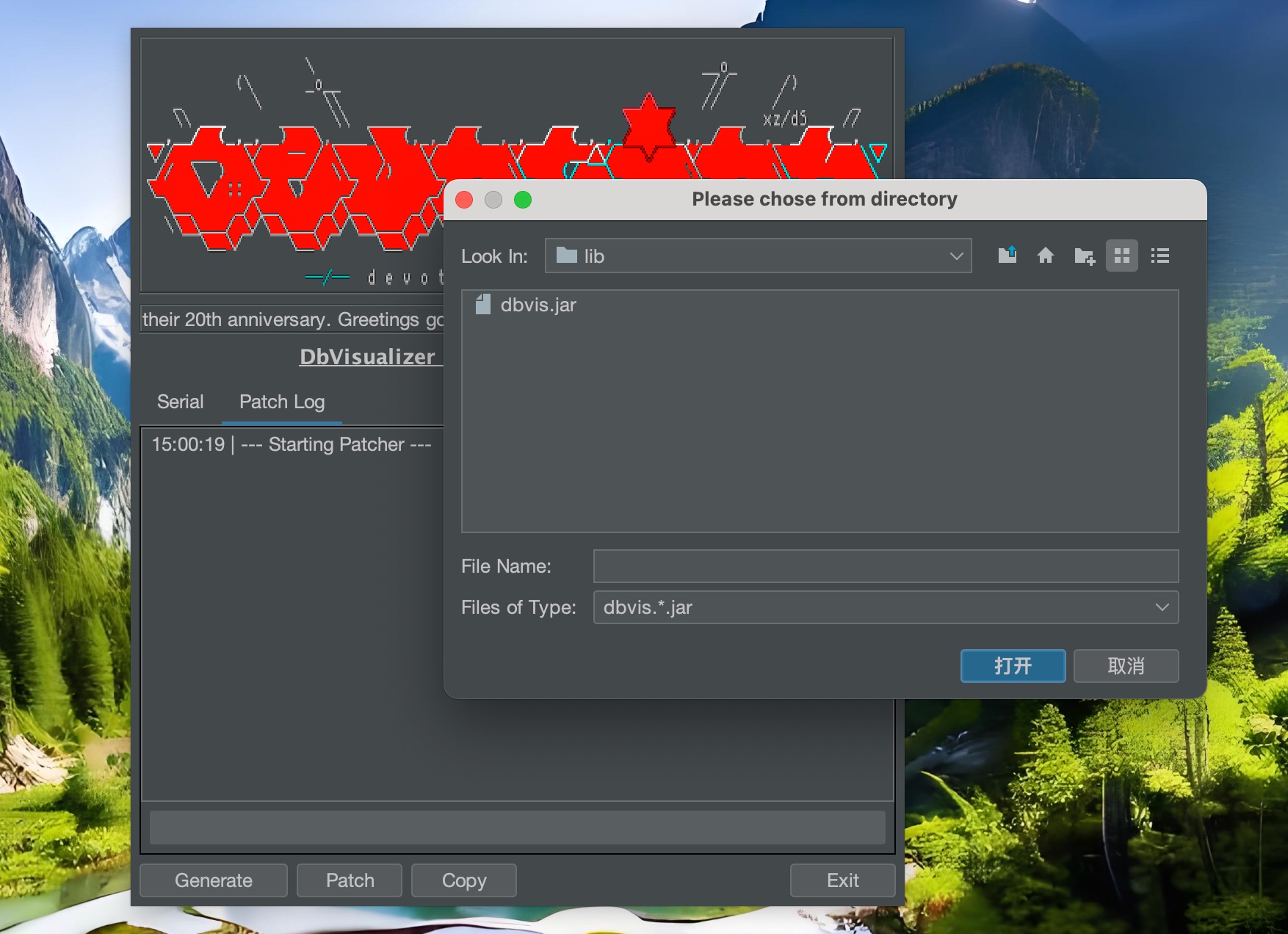选择dbvis.jar打开,等待几十秒钟,会出现Patching done的字样