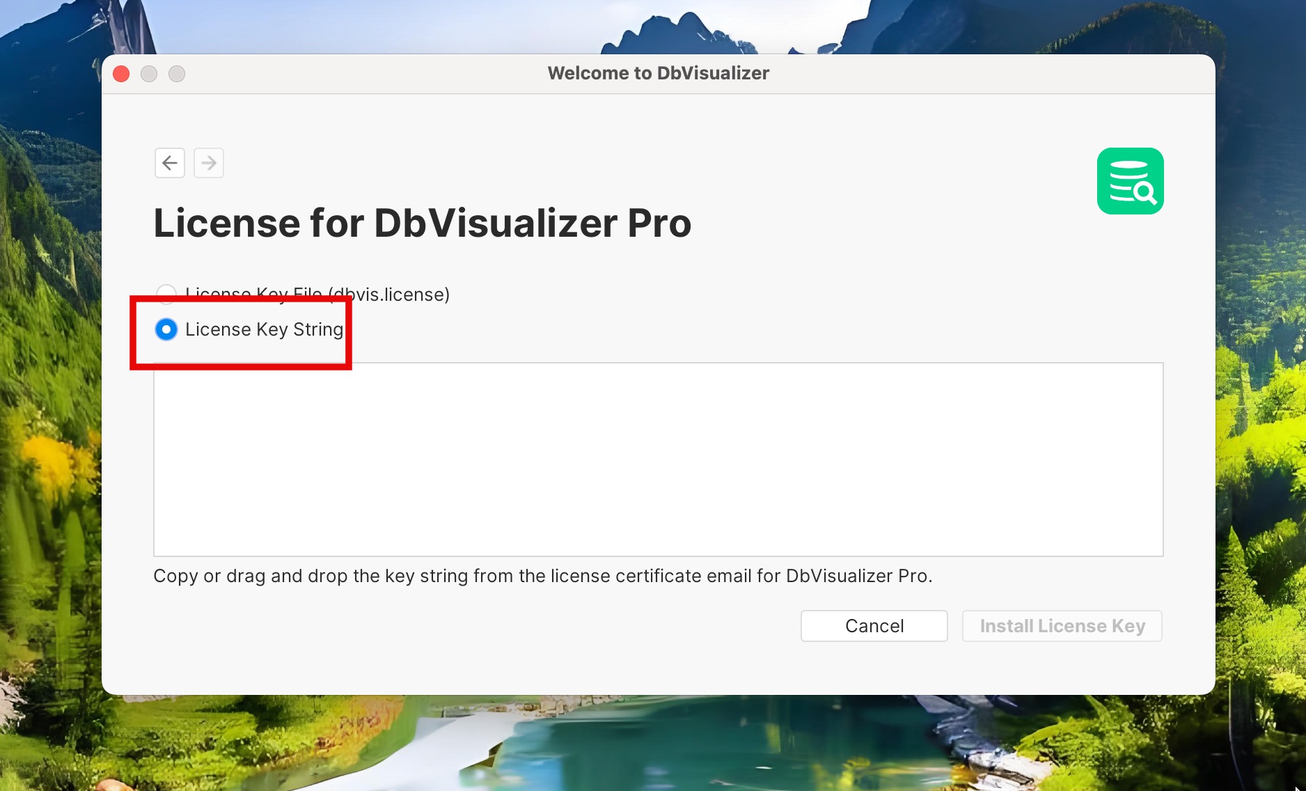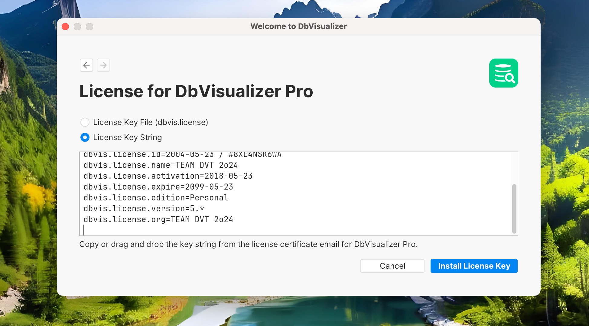 将复制好的注册码粘贴到注册页面,最后点击Install License Key