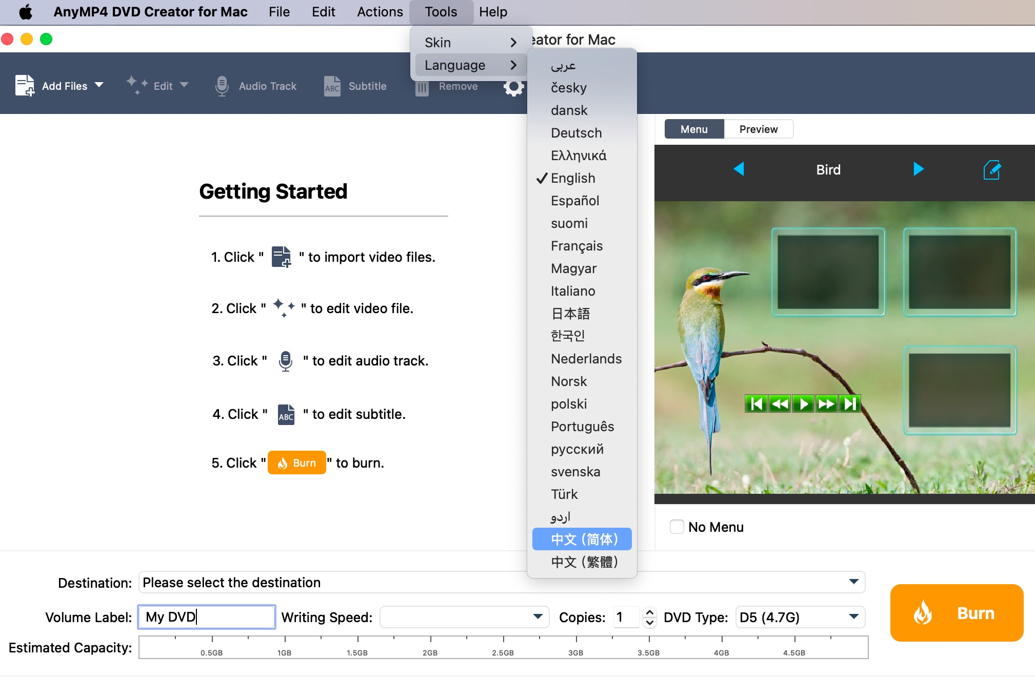 AnyMP4 DVD Creator 是一款专业的DVD制作工具,支持将视频、照片转换为DVD光盘或ISO文件。提供丰富的菜单模板,可自定义背景、音乐和字幕,支持高清输出与快速刻录。适用于家庭影像存档、商业演示等场景,操作简单,是Mac用户制作个性化DVD的得力助手。