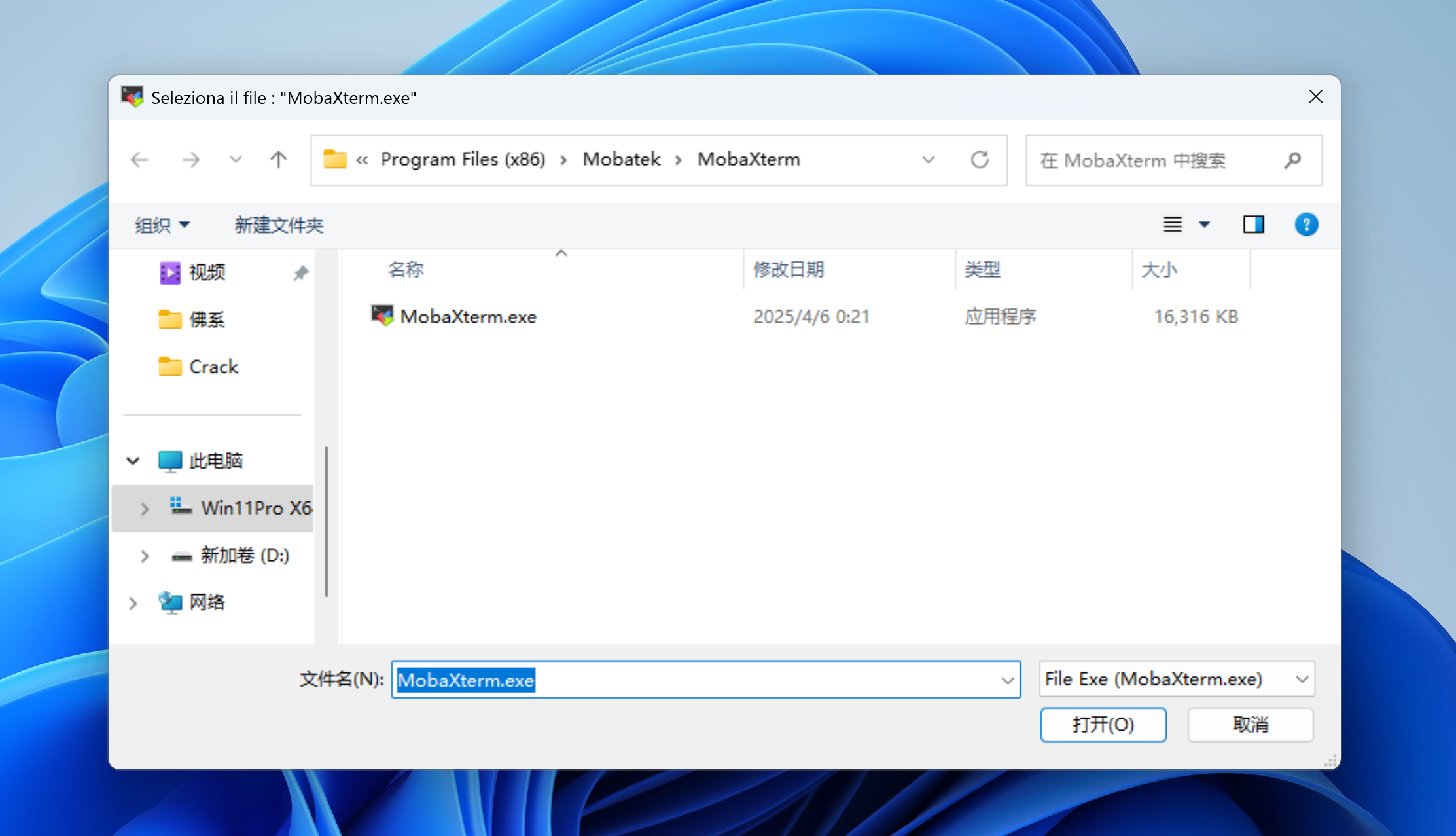 然后在出现的弹窗中选择软件主程序,然后点击“打开”