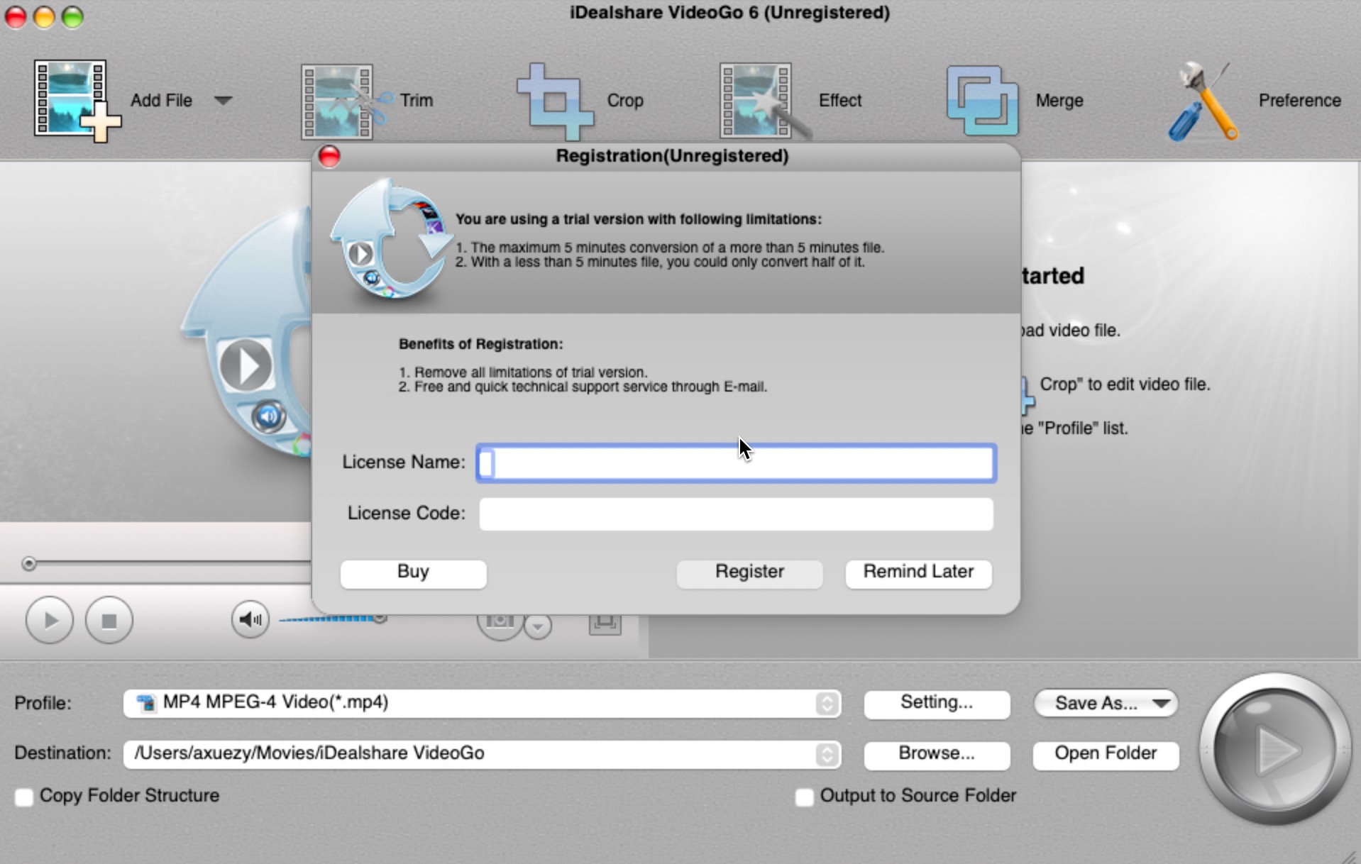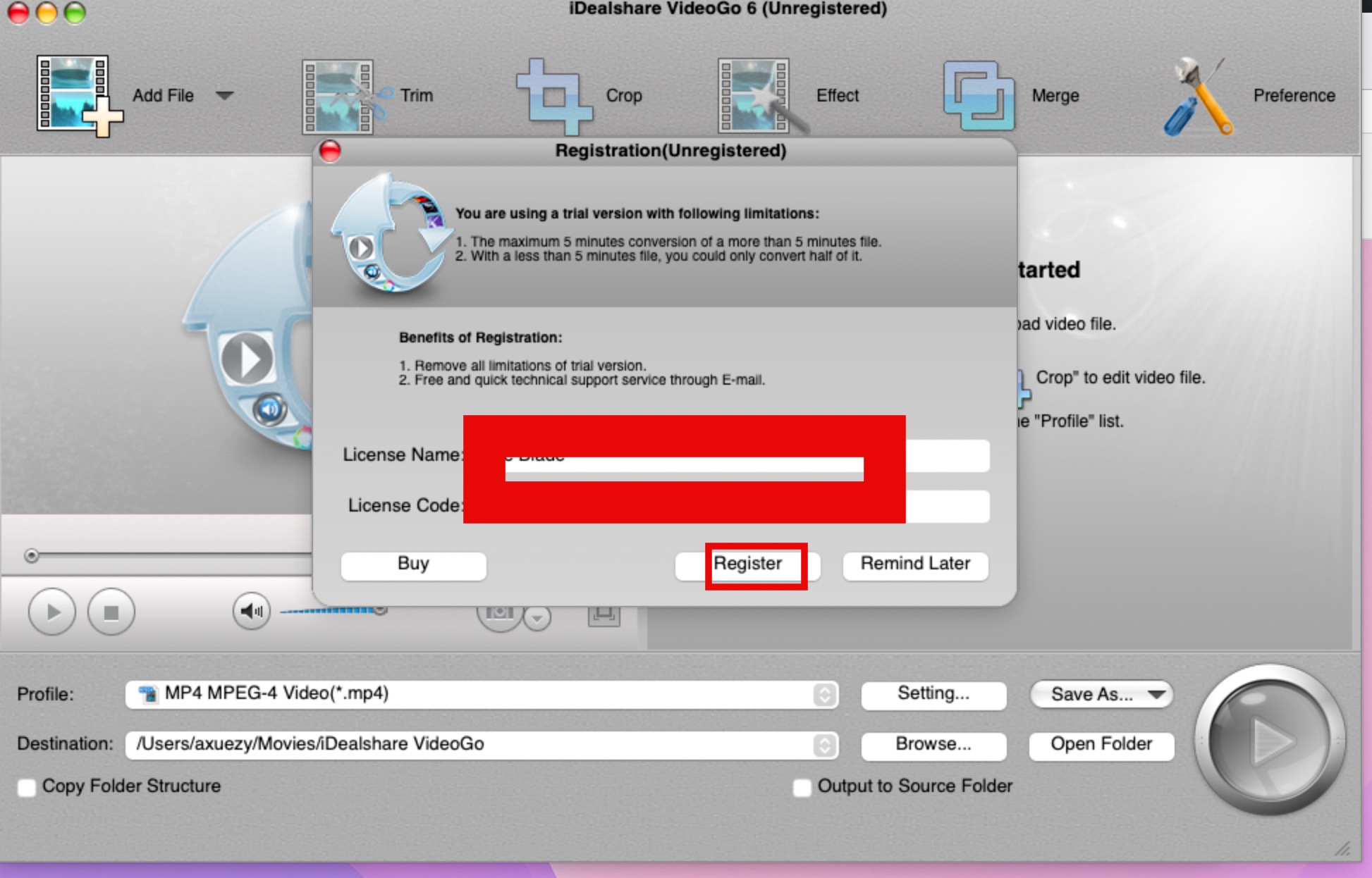 运行idealshare videogo for mac,提示注册