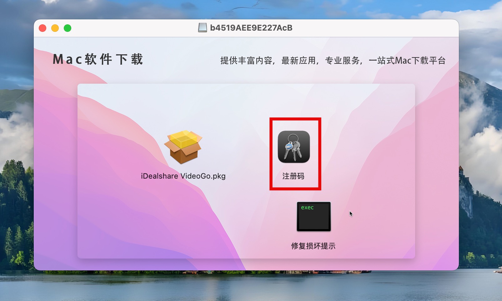 下载好iDealshare VideoGo安装包并打开,双击iDealshare VideoGo.pkg进行安装