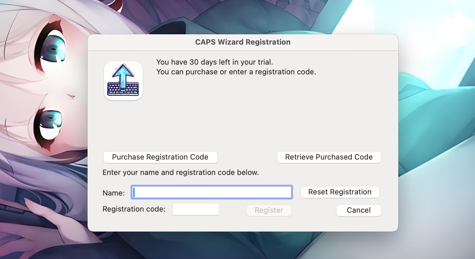 打开软件,点击菜单栏左上角CAps Wizard-registration