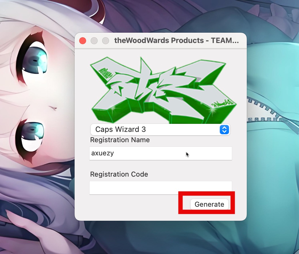 返回镜像包,打开注册机,选择要激活的软件CAps Wizard,任意输入姓名后点击generate生成注册码