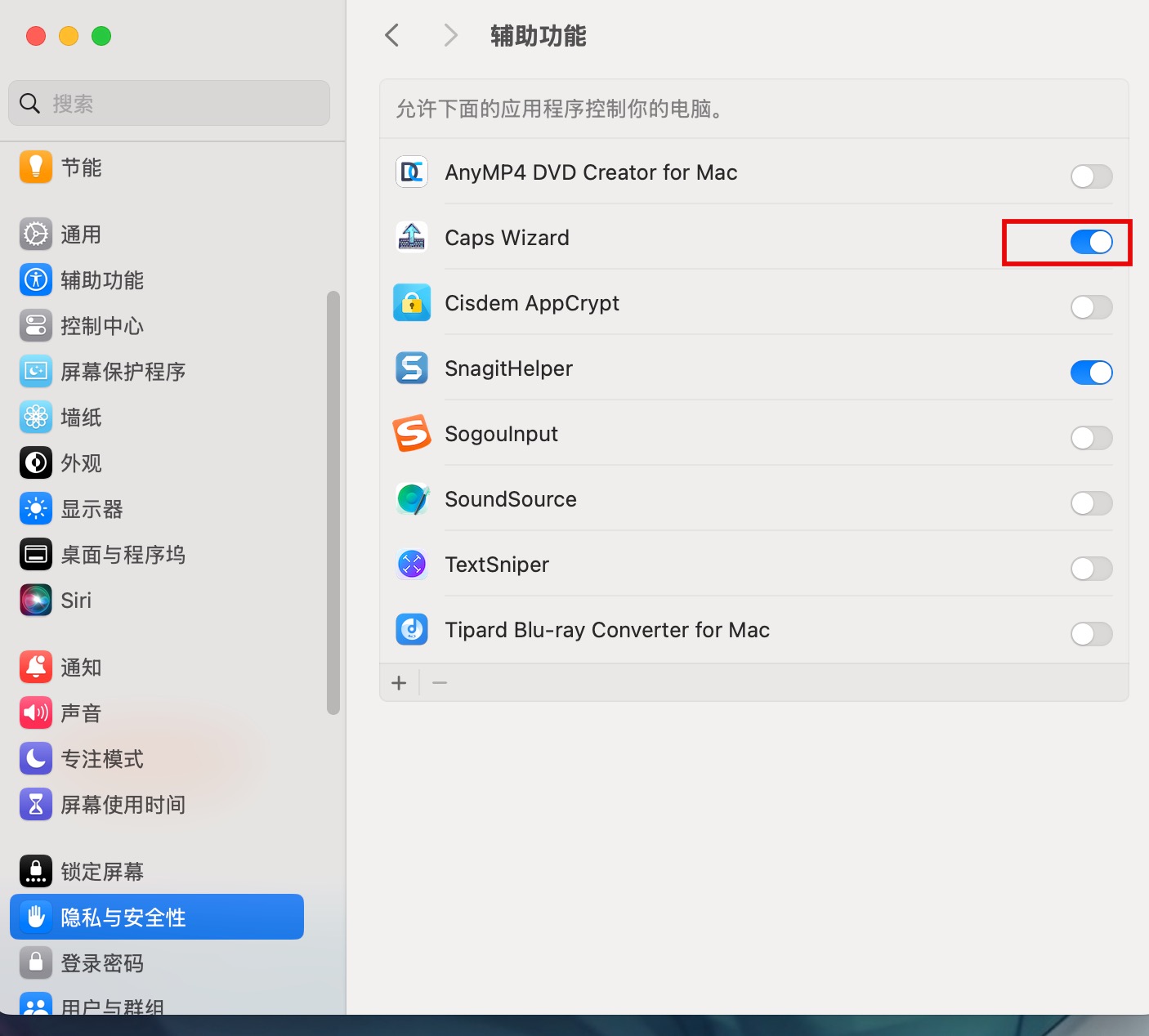 在系统偏好设置-隐私与安全性-辅助功能中打开应用权限