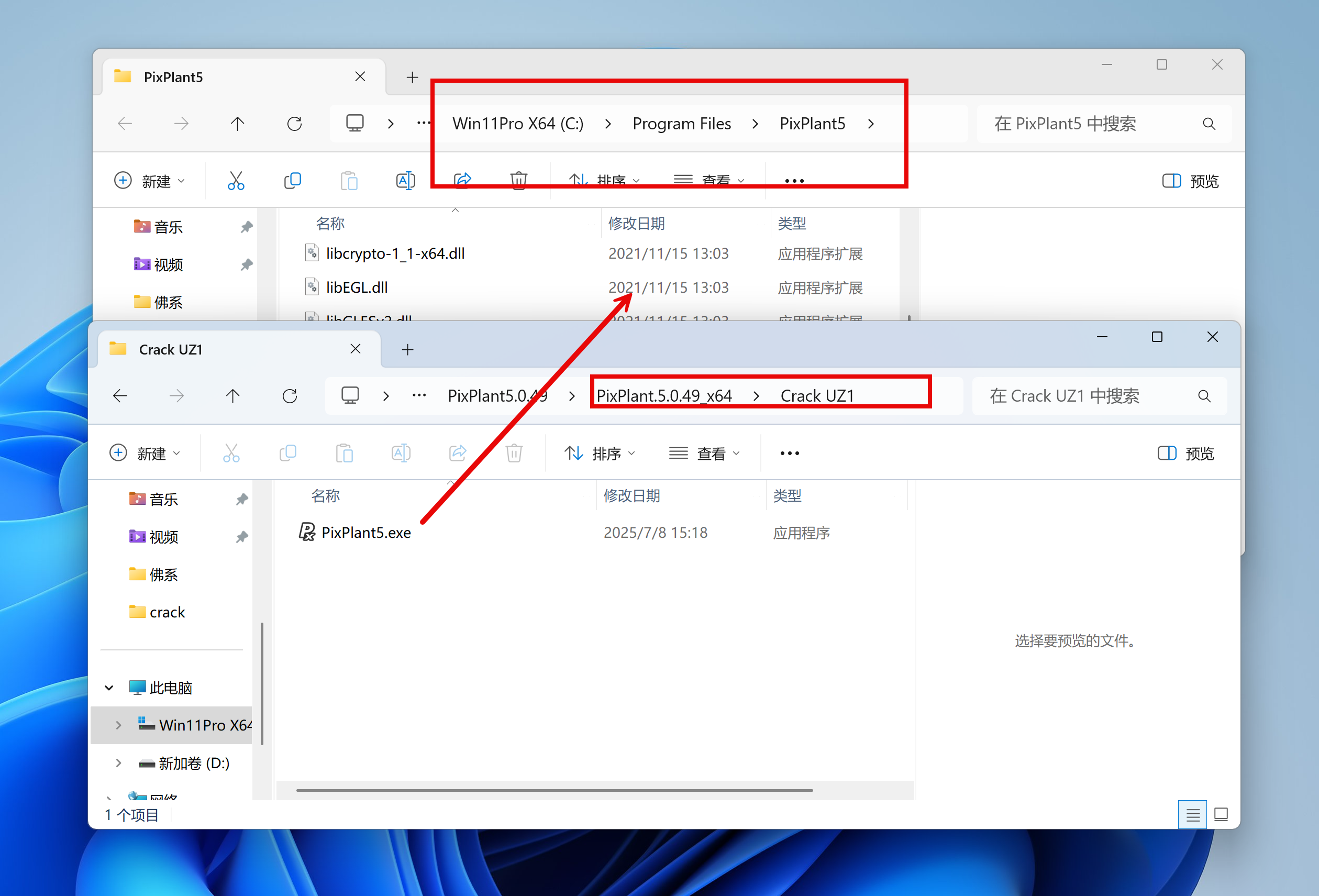 将“Crack”文件夹中的破解文件复制到安装目录中,点击“替换即可”