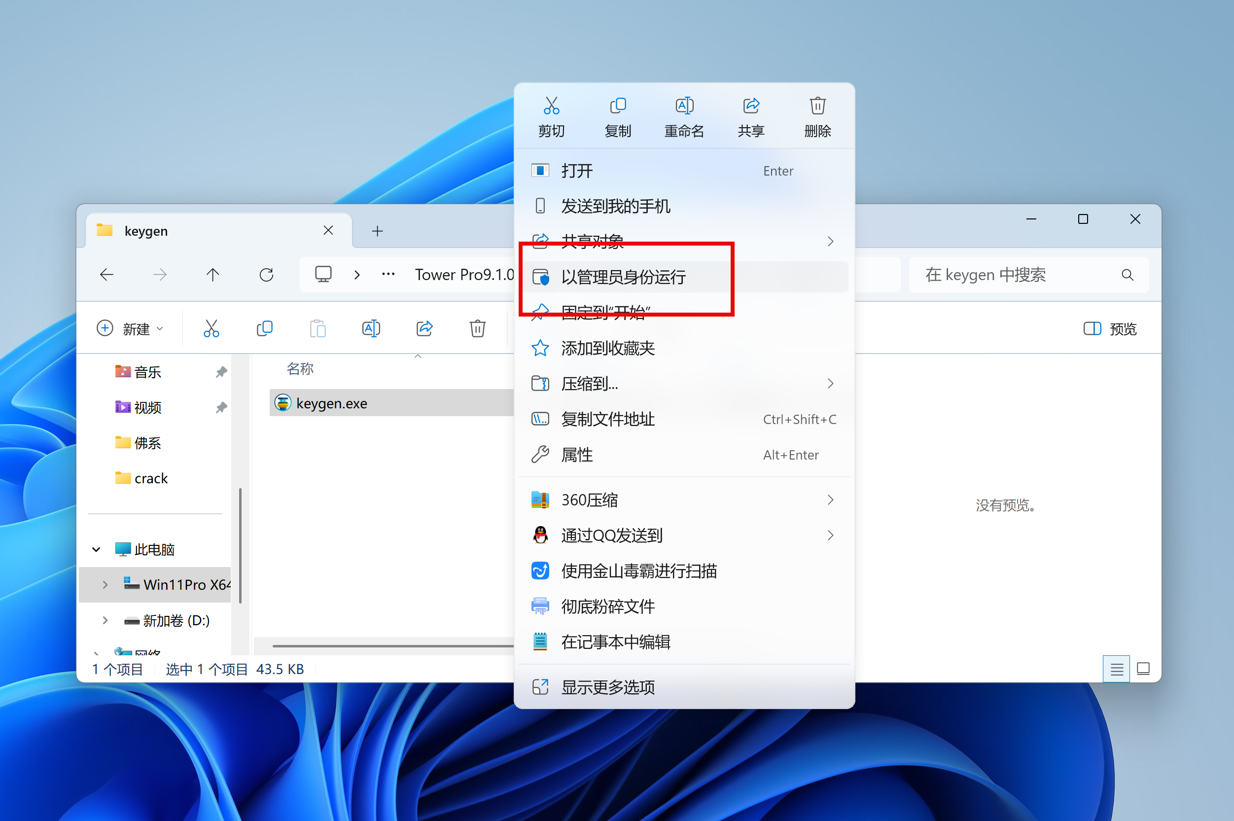 解压keygen.7z,右键管理员运行keygen注册机,在第二个框中输入邮箱点击Generate即可完成破解