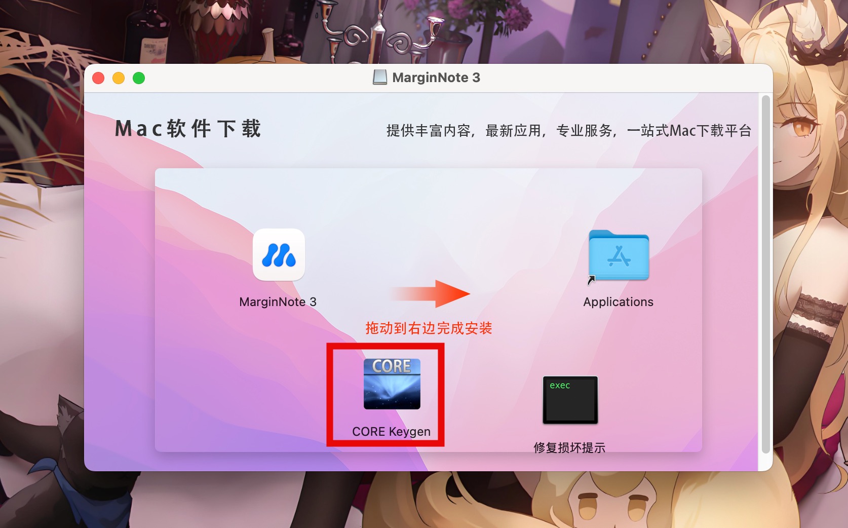 打开MarginNote 3,点击继续试用后关闭软件,返回镜像包,双击打开CORE Keygen