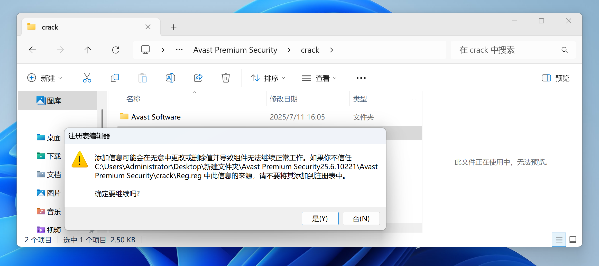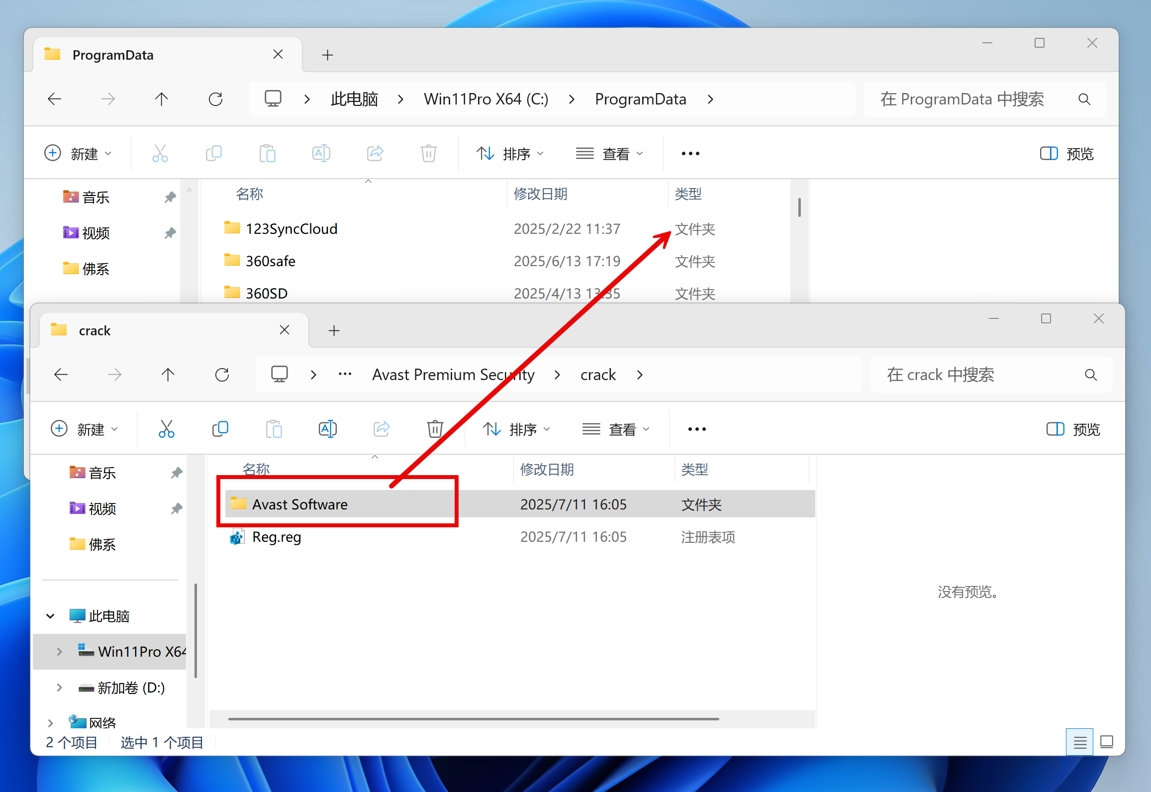 完全卸载旧版本,将Avast Software文件夹复制到C:\ProgramData\