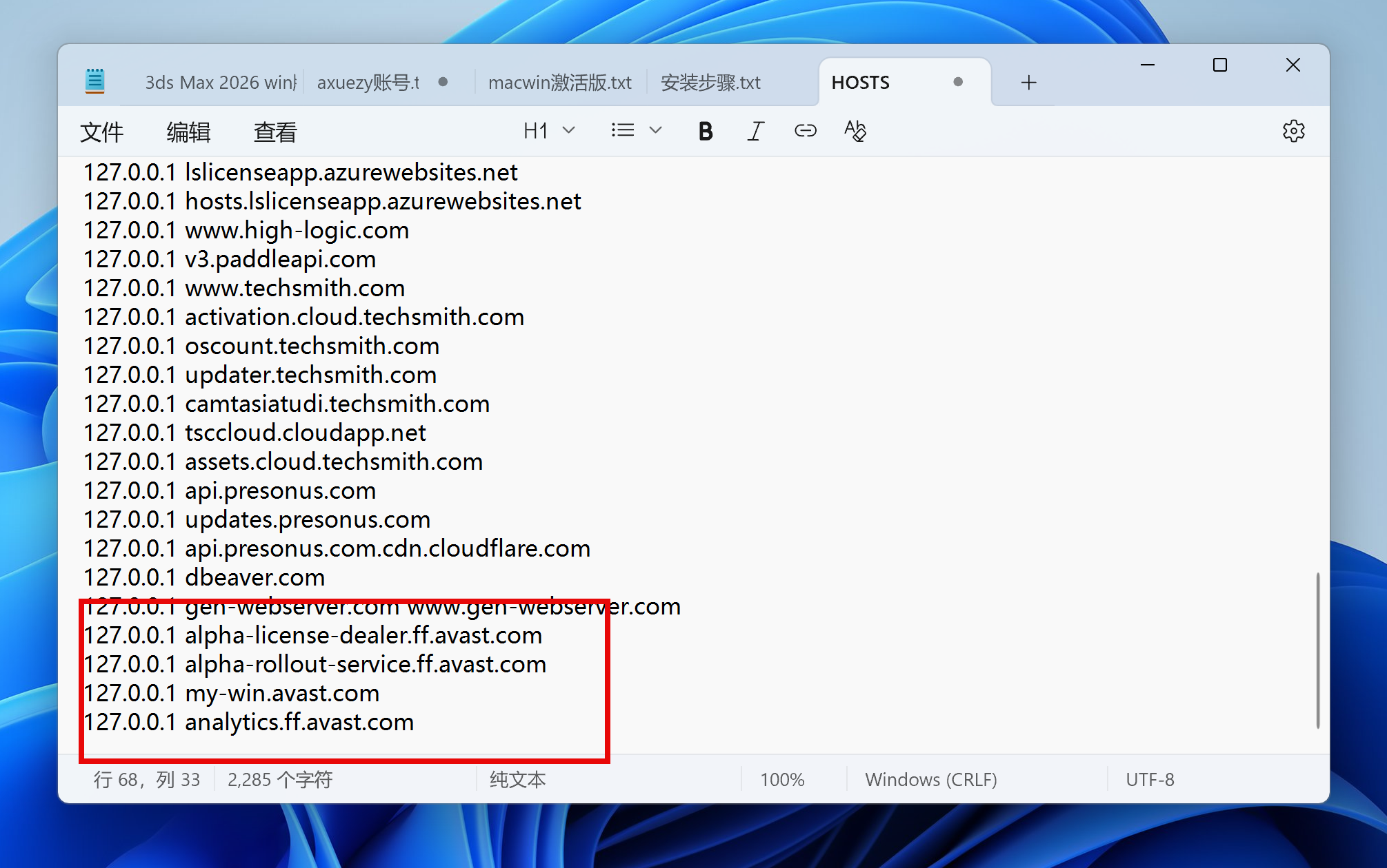 添加host规则,用记事本打开host,将以下规则复制进去点击保存, host地址C:\Windows\System32\drivers\etc