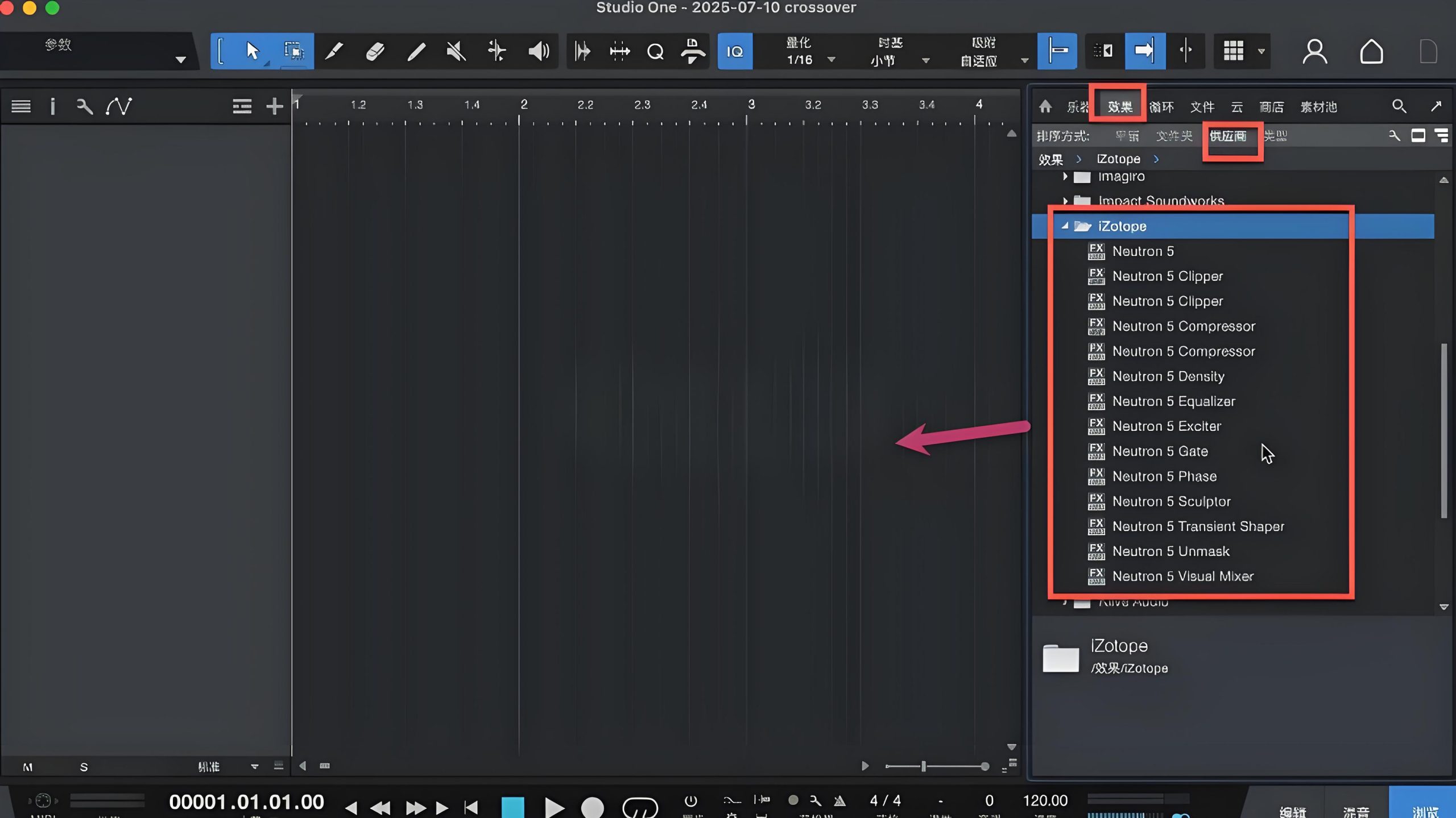 打开studio one,在效果-供应商中就可以找到该插件,将插件拖动至左侧空白位置即可使用