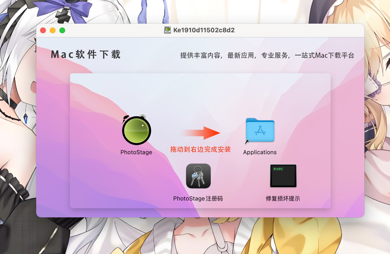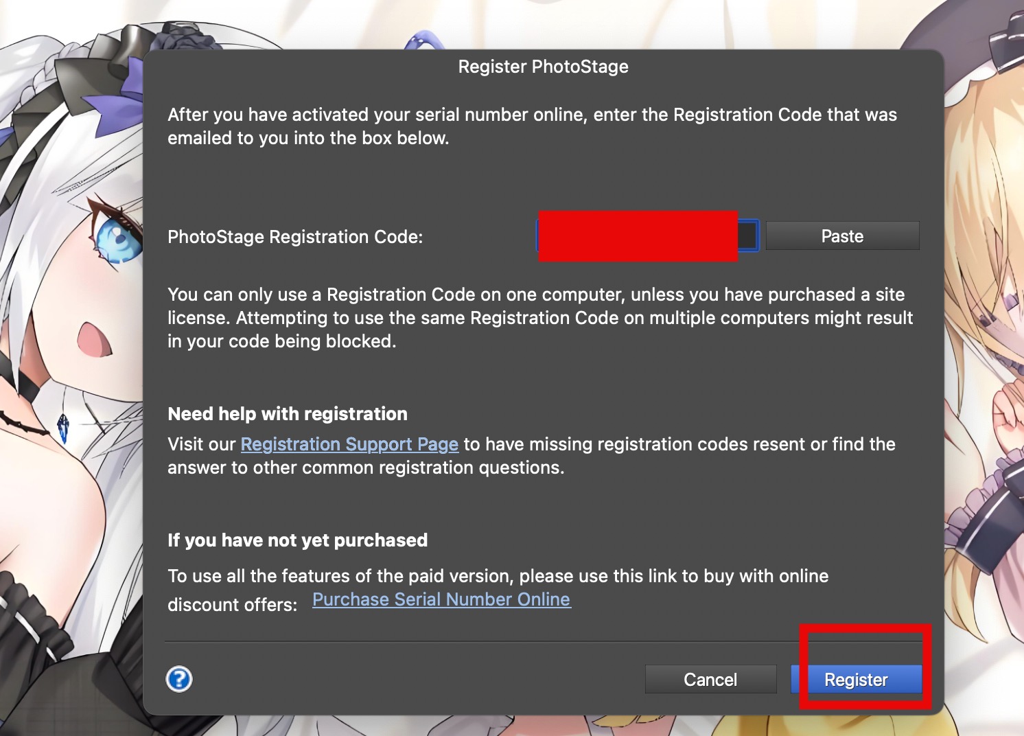回到PhotoStage for Mac镜像包,打开并复制PhotoStage注册码。将PhotoStage 注册码复制到对应位置,(点击paste即可粘贴注册码)然后点击【registear】。