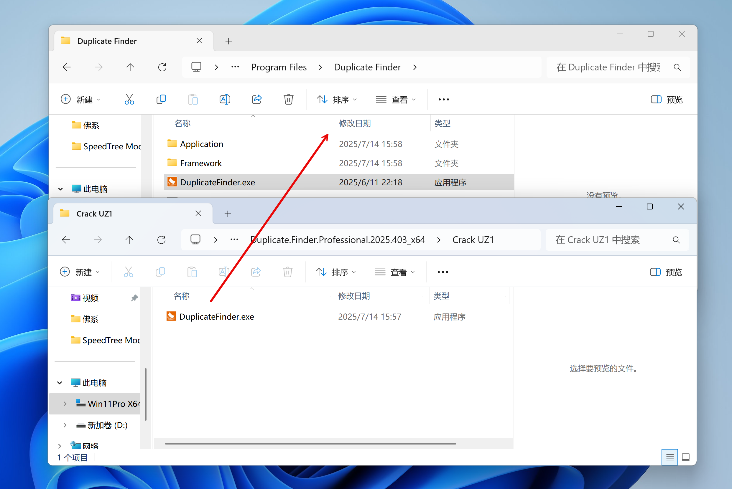 将Crack UZ1文件夹中的破解文件复制安装目录中,并替换