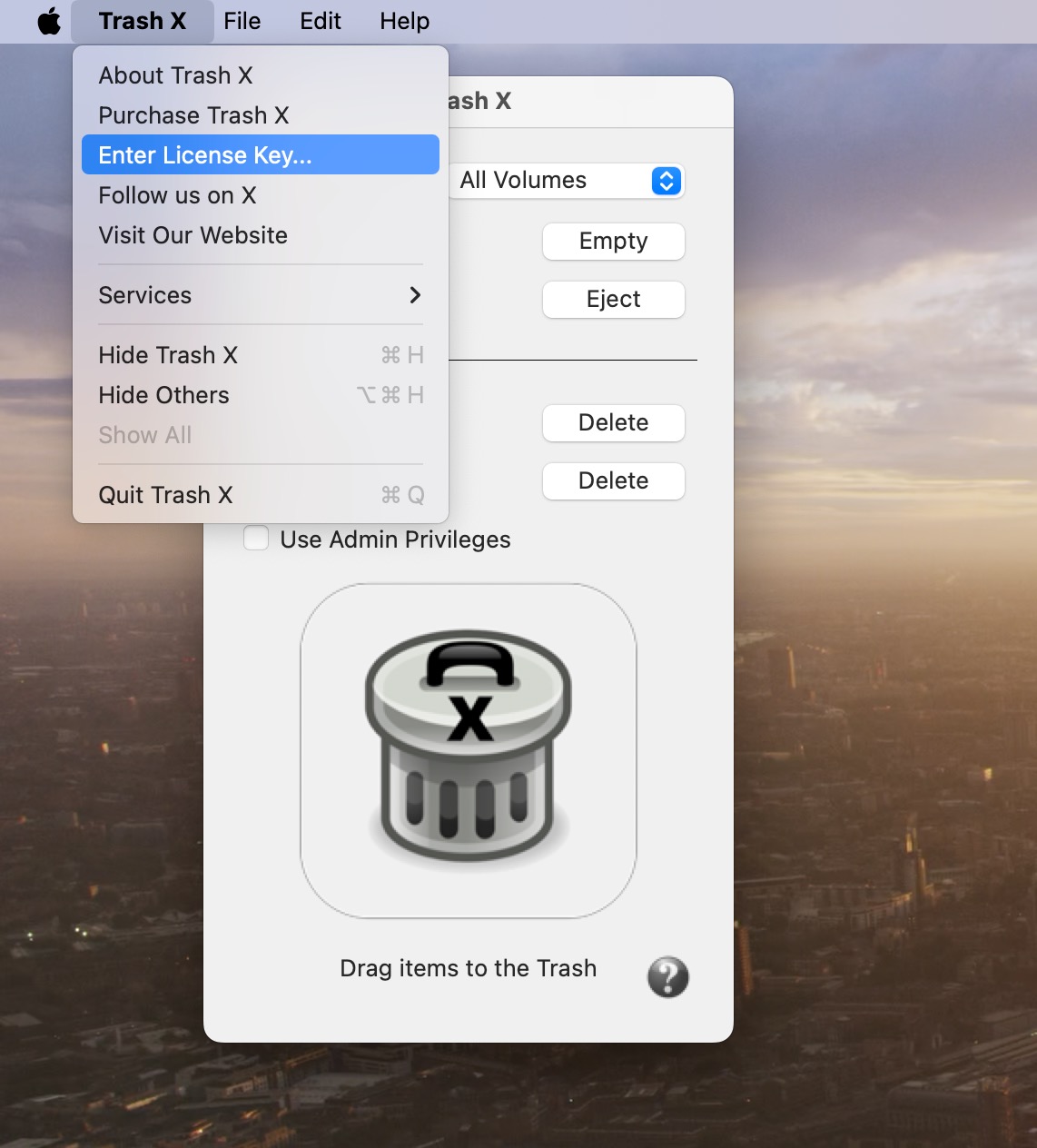 安装完成后打开软件,点击左上角Trash X–Enter License Key进入注册页面