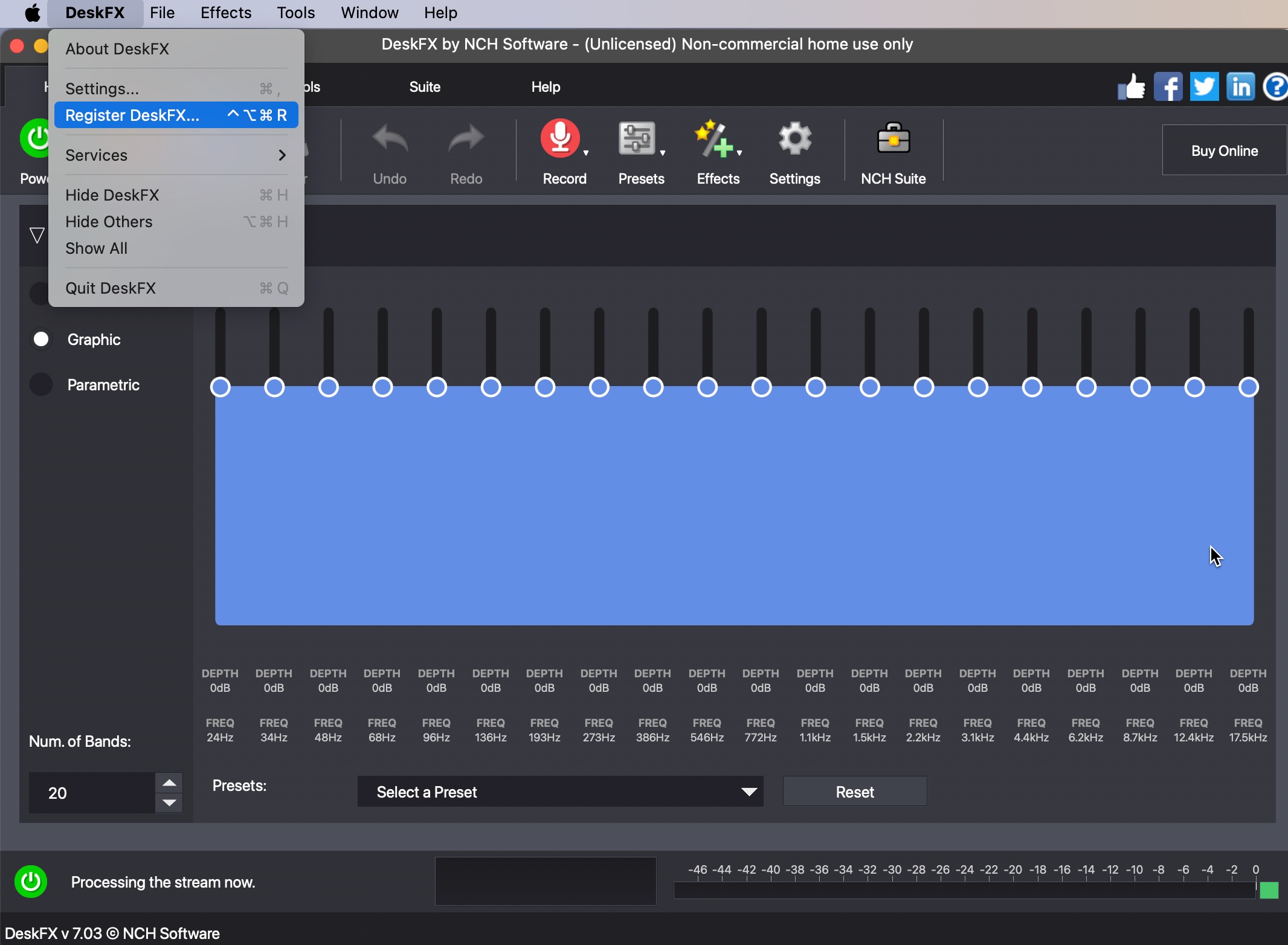 DeskFX Plus for Mac 是一款专业级音频增强软件,为音乐制作人、播客和影音爱好者提供实时音效处理。支持3D环绕声、EQ均衡器、混响、动态压缩等高级音频效果,可应用于系统全局或单个应用程序。直观的界面设计配合可视化频谱分析,让您轻松优化音质,打造沉浸式听觉体验。完美兼容主流音频软件和流媒体平台,是提升Mac音频表现的终极工具。
