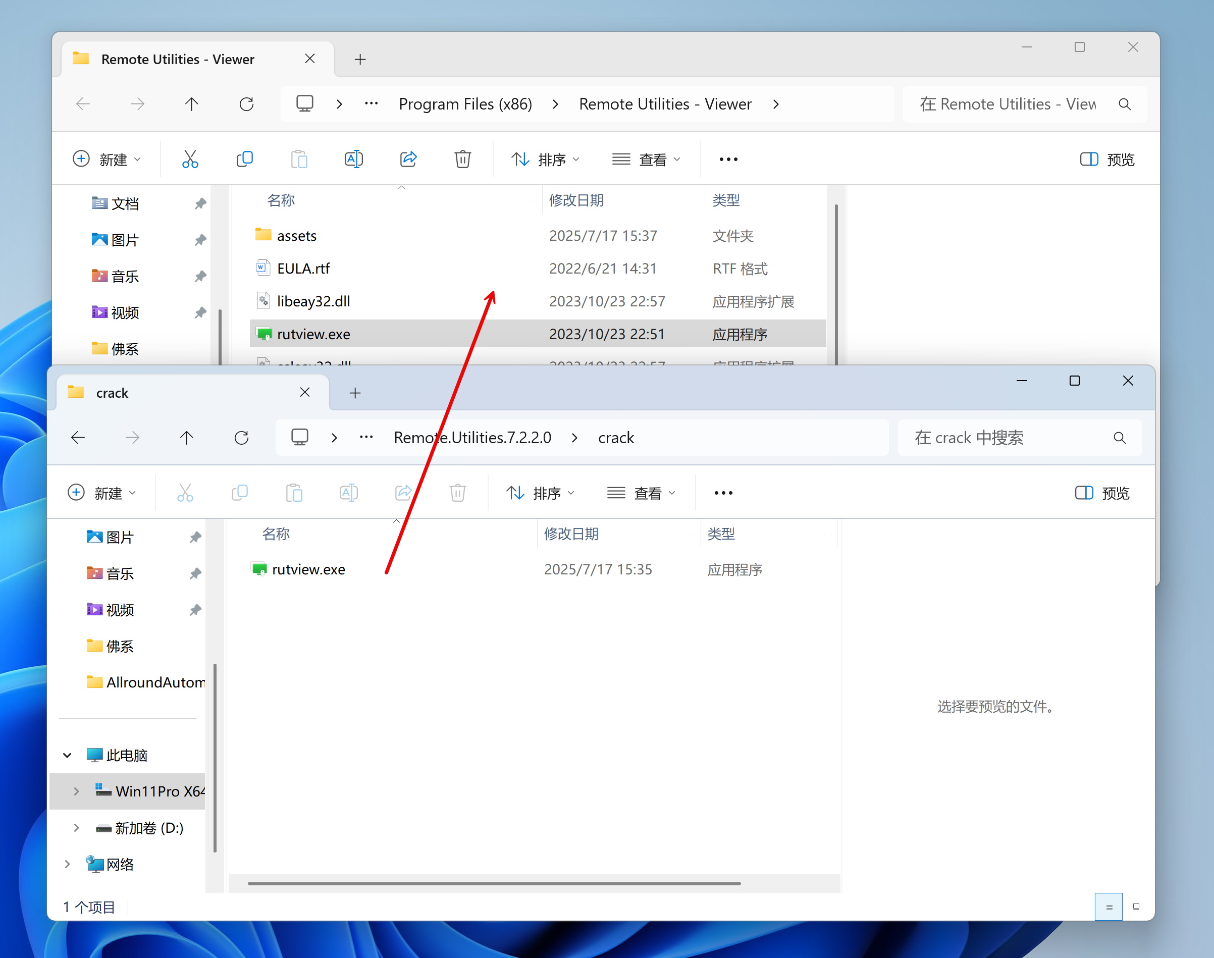 打开安装包中的”crack”文件夹,将里面的破解补丁复制到安装目录下,并进行替换即可破解完成;默认目录C:\Program Files (x86)\Remote Utilities – Viewer