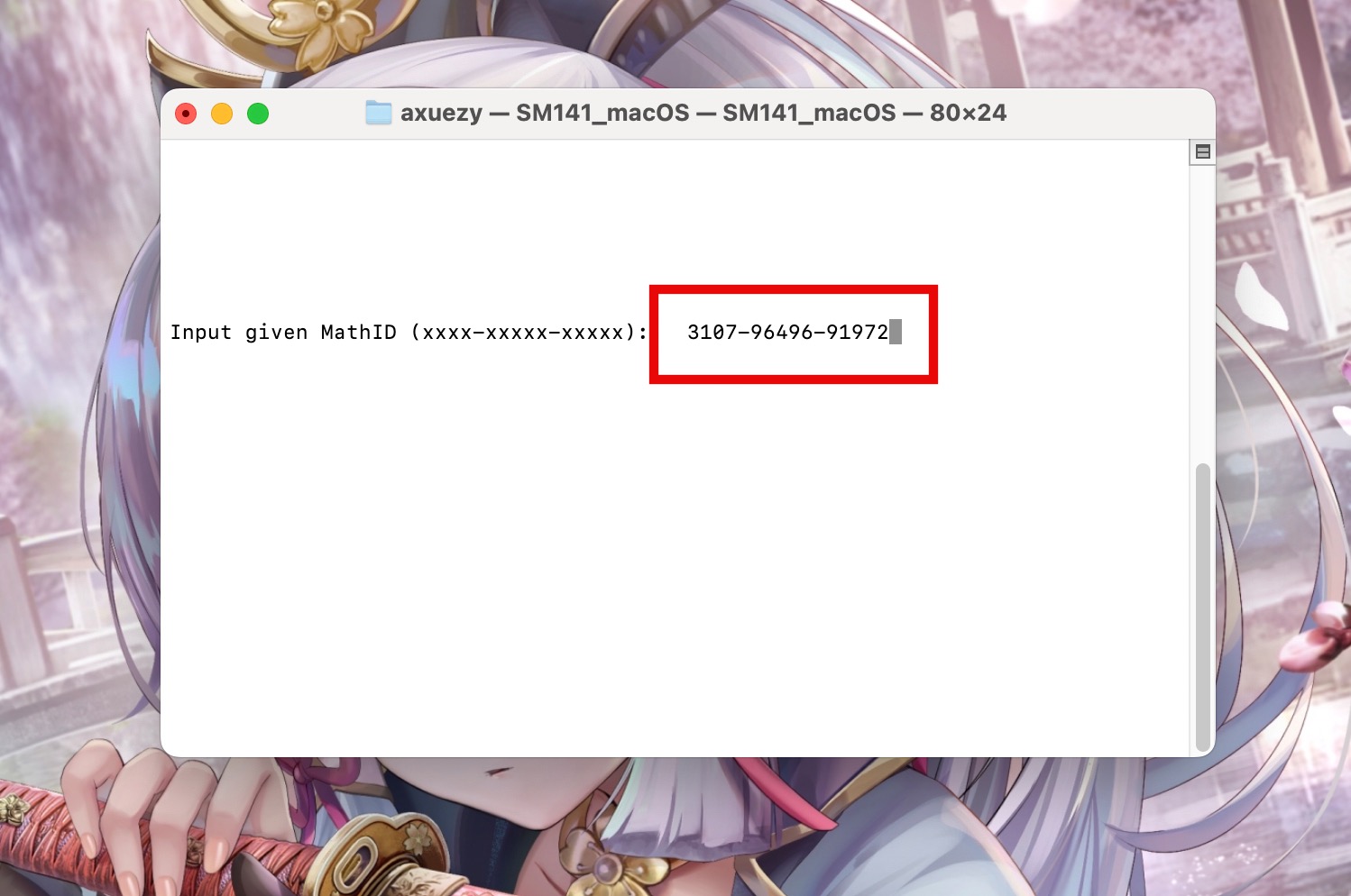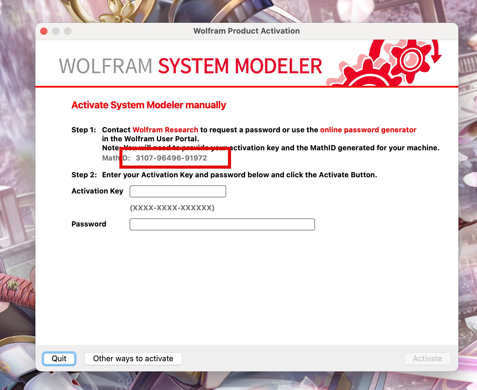输入激活页面上的Math ID,回车