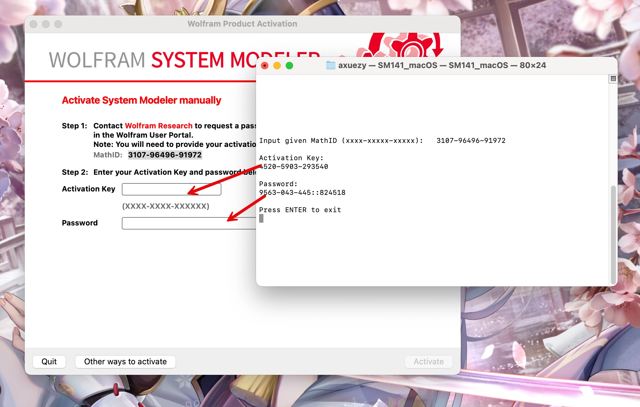 将生成的激活密钥和密码复制到激活页面,点击激活即可