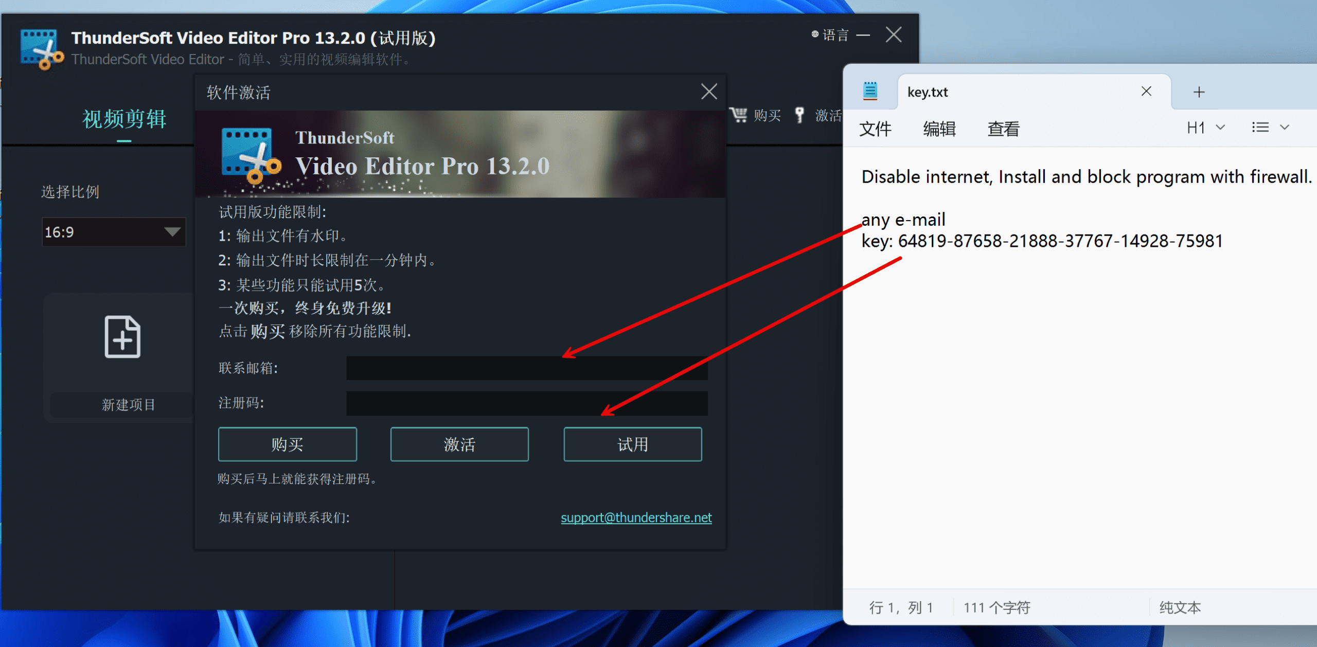 回到安装包打开.txt文件,将注册码输入到指定位置即可