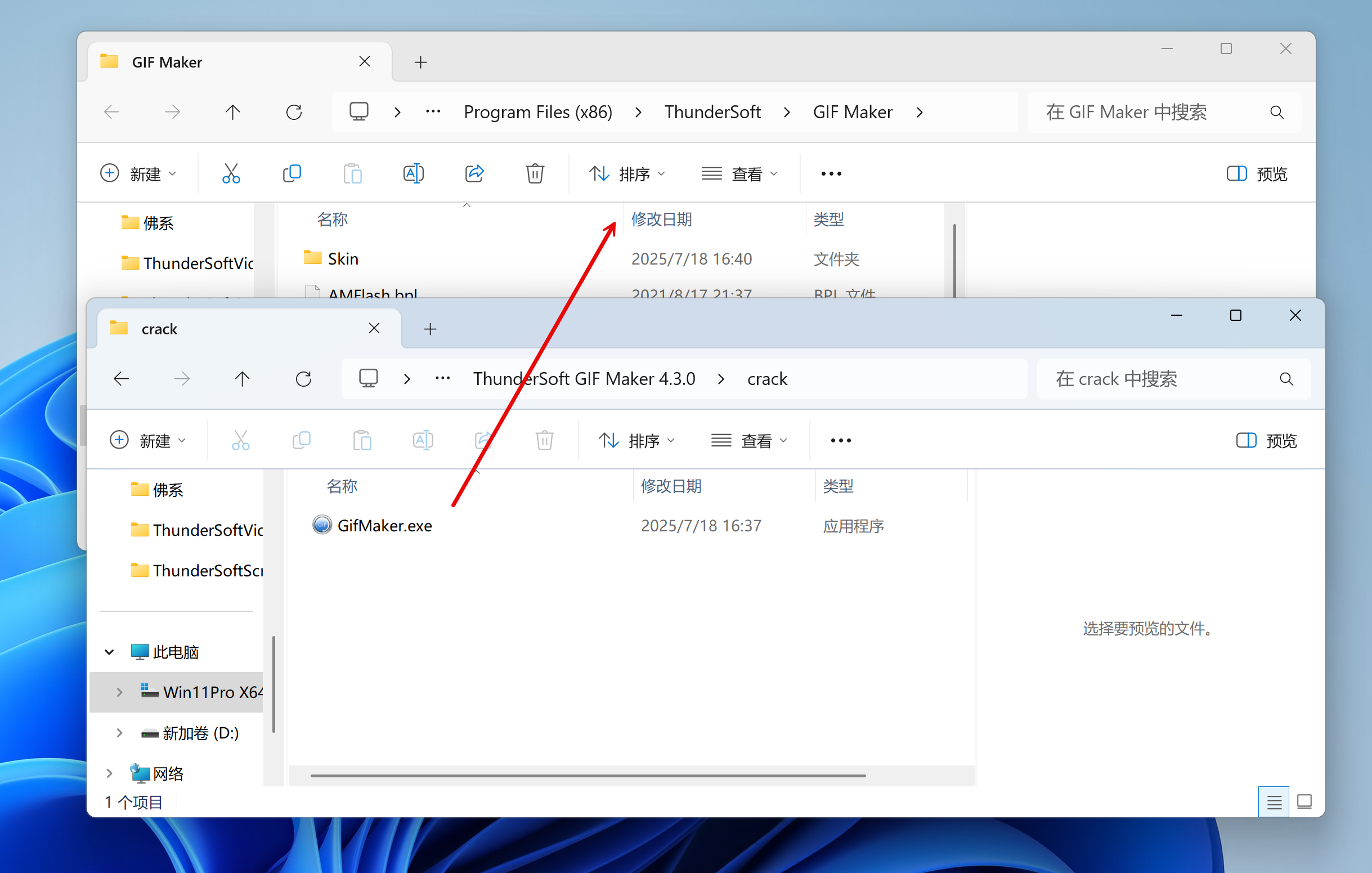 返回到安装包双击打开crack文件夹,将里边的文件复制粘贴进软件目录中并点击替换文件,破解完成。该目录默认为为:C:\Program Files (x86)\ThunderSoft\GIF Maker