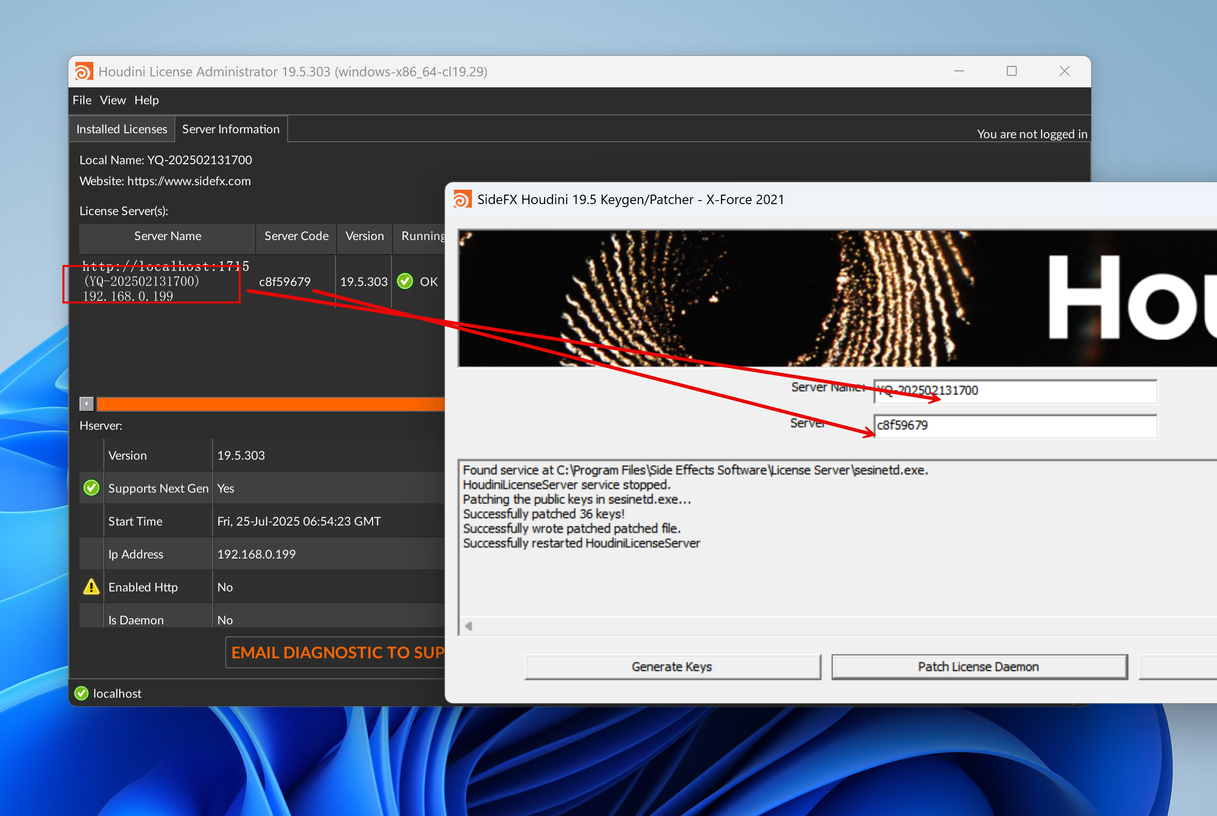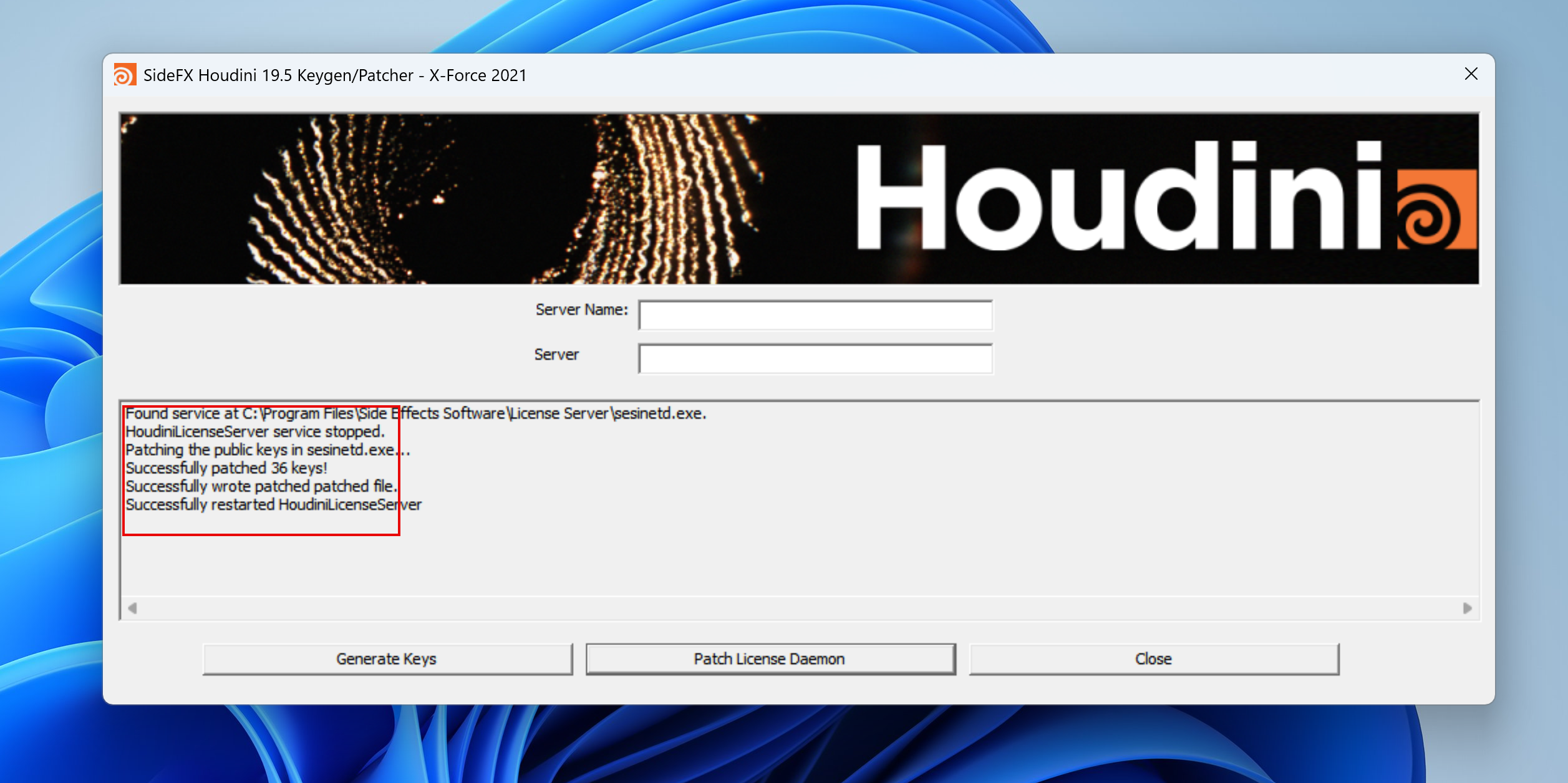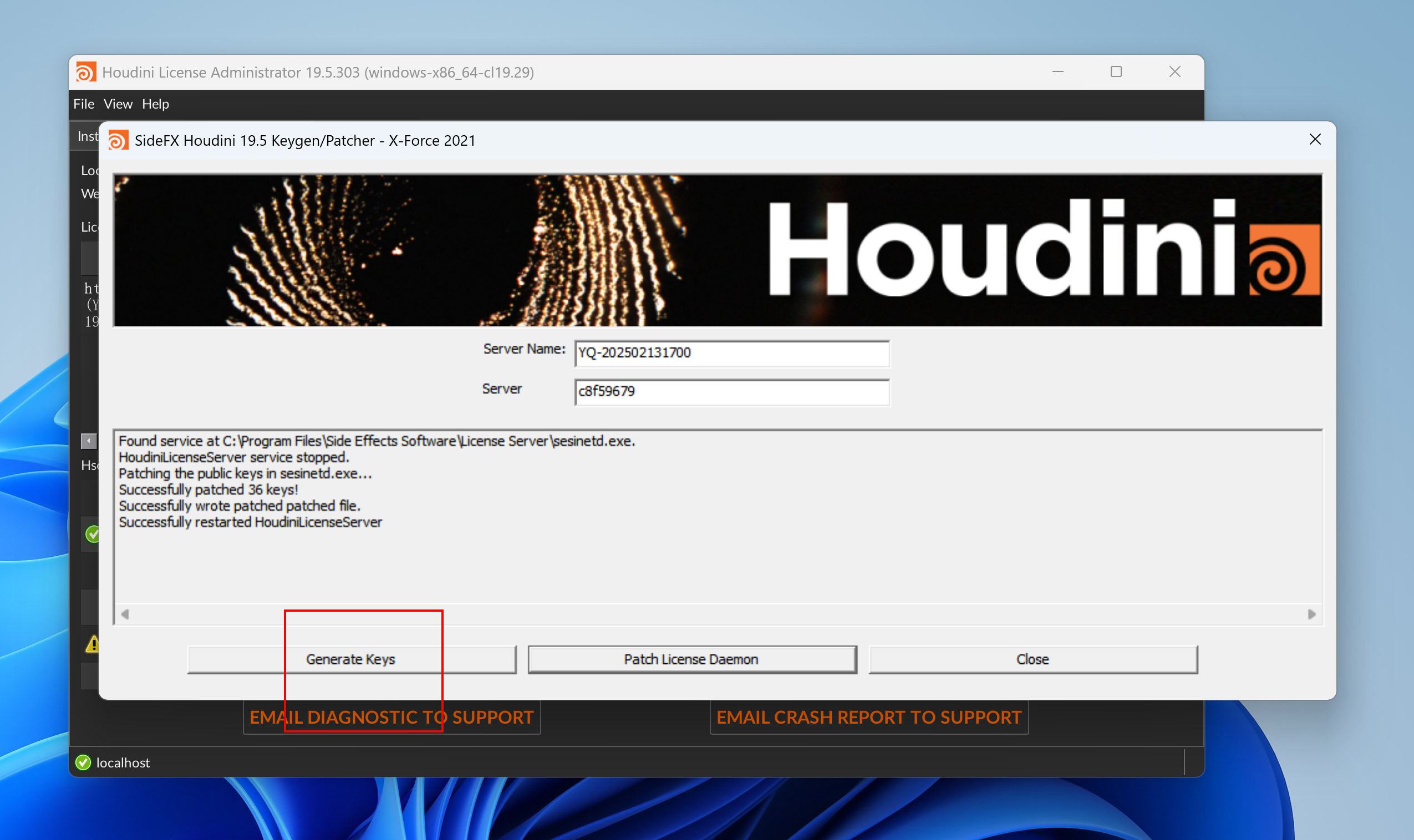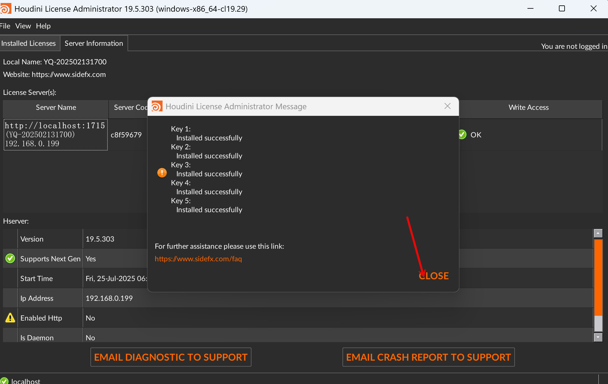 将注册机里的前五组注册码复制Houdini Manual Key Installation Dialog的Keys里面,点击ACCEPT