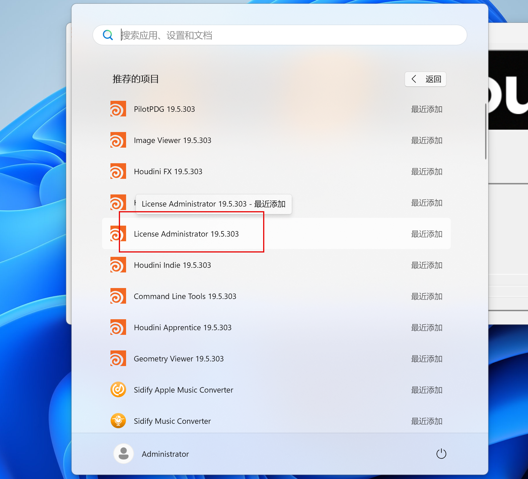 在电脑开始菜单里面找到License Administrator 19.5.303打开