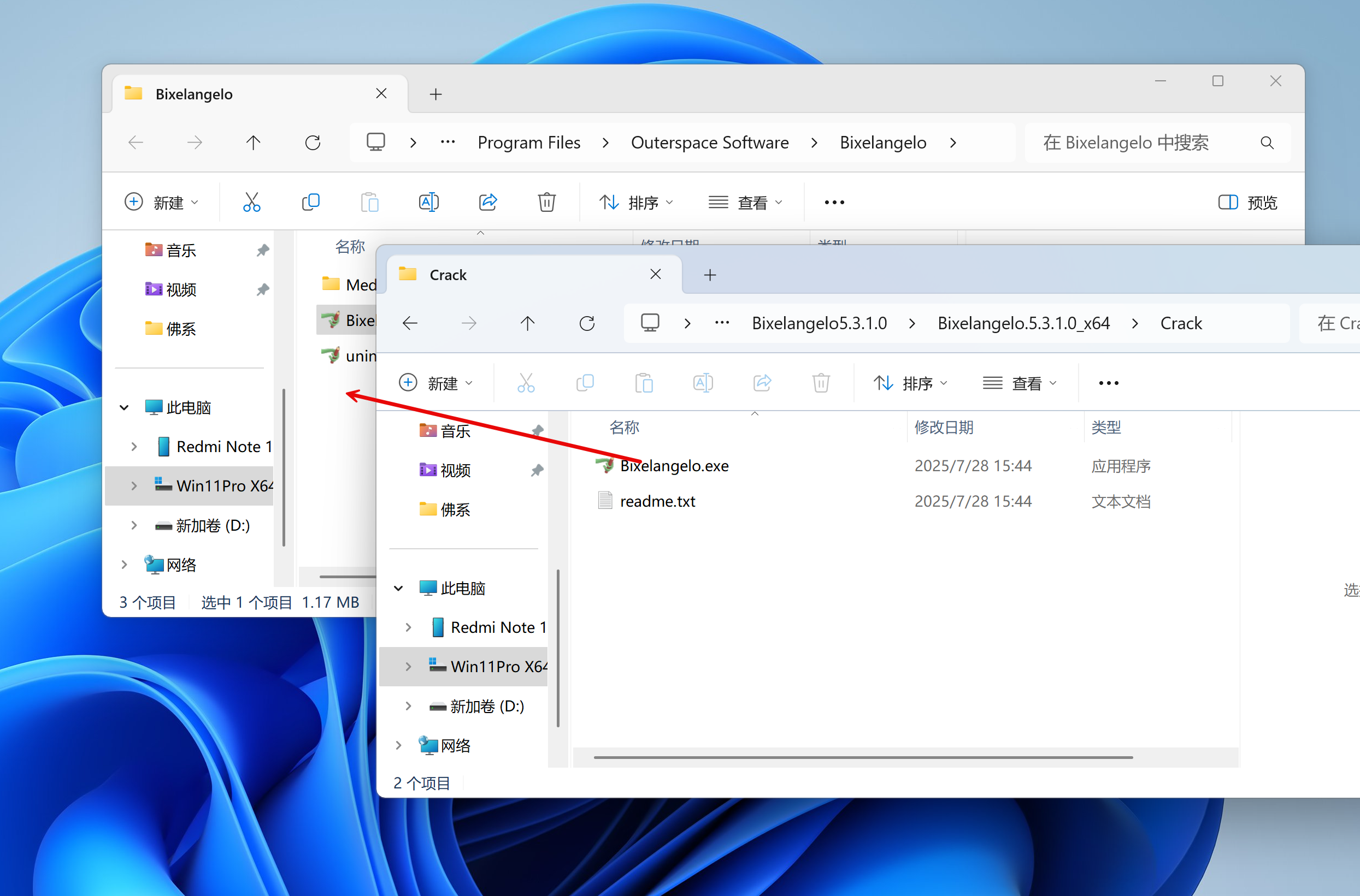打开软件的安装目录,将安装包crack文件夹中的破解补丁复制到目录下,并进行替换即可完成破解
