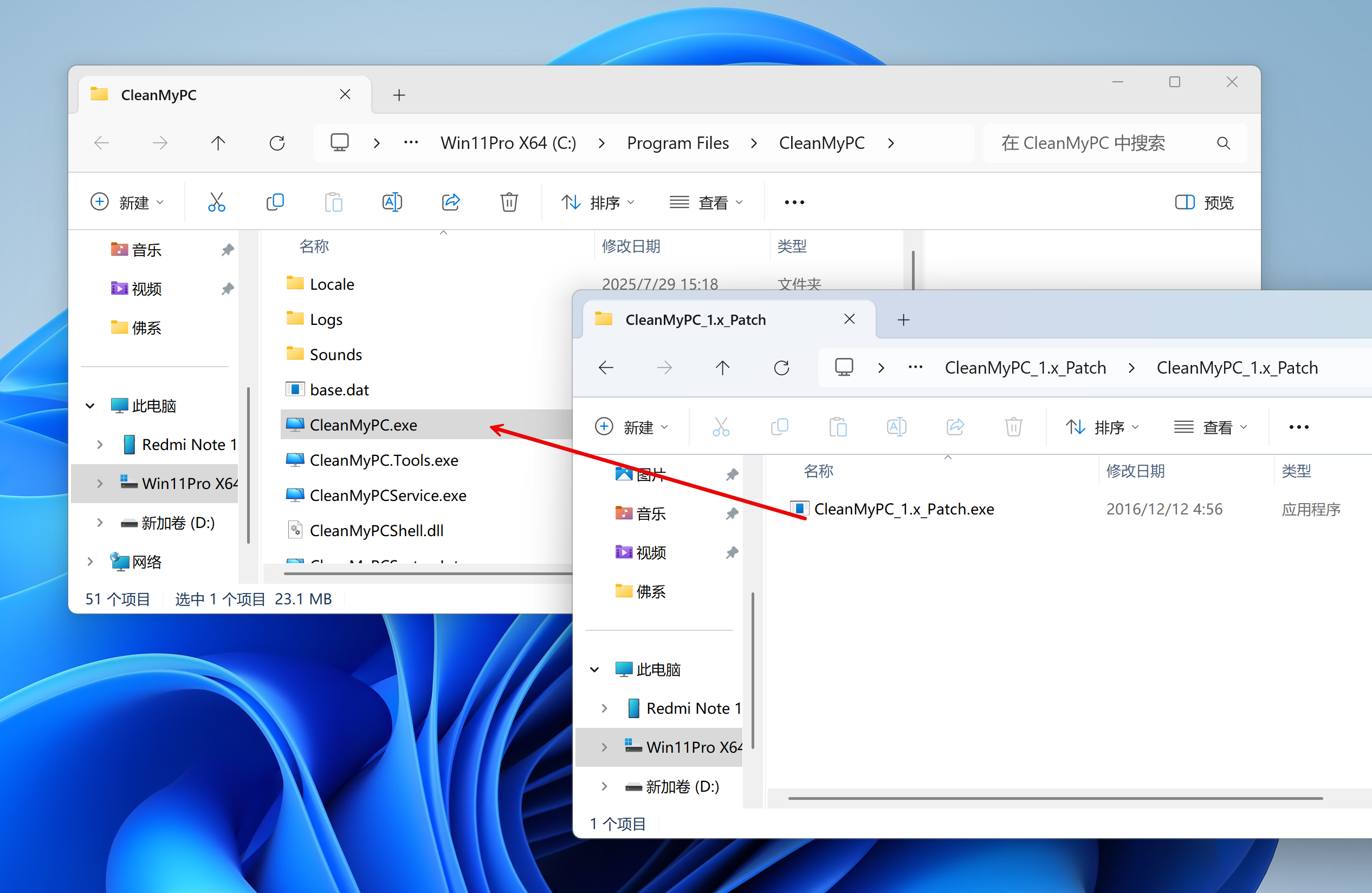 解压CleanMyPC_1.x_Patch.7z,然后将破解补丁,复制到安装目录