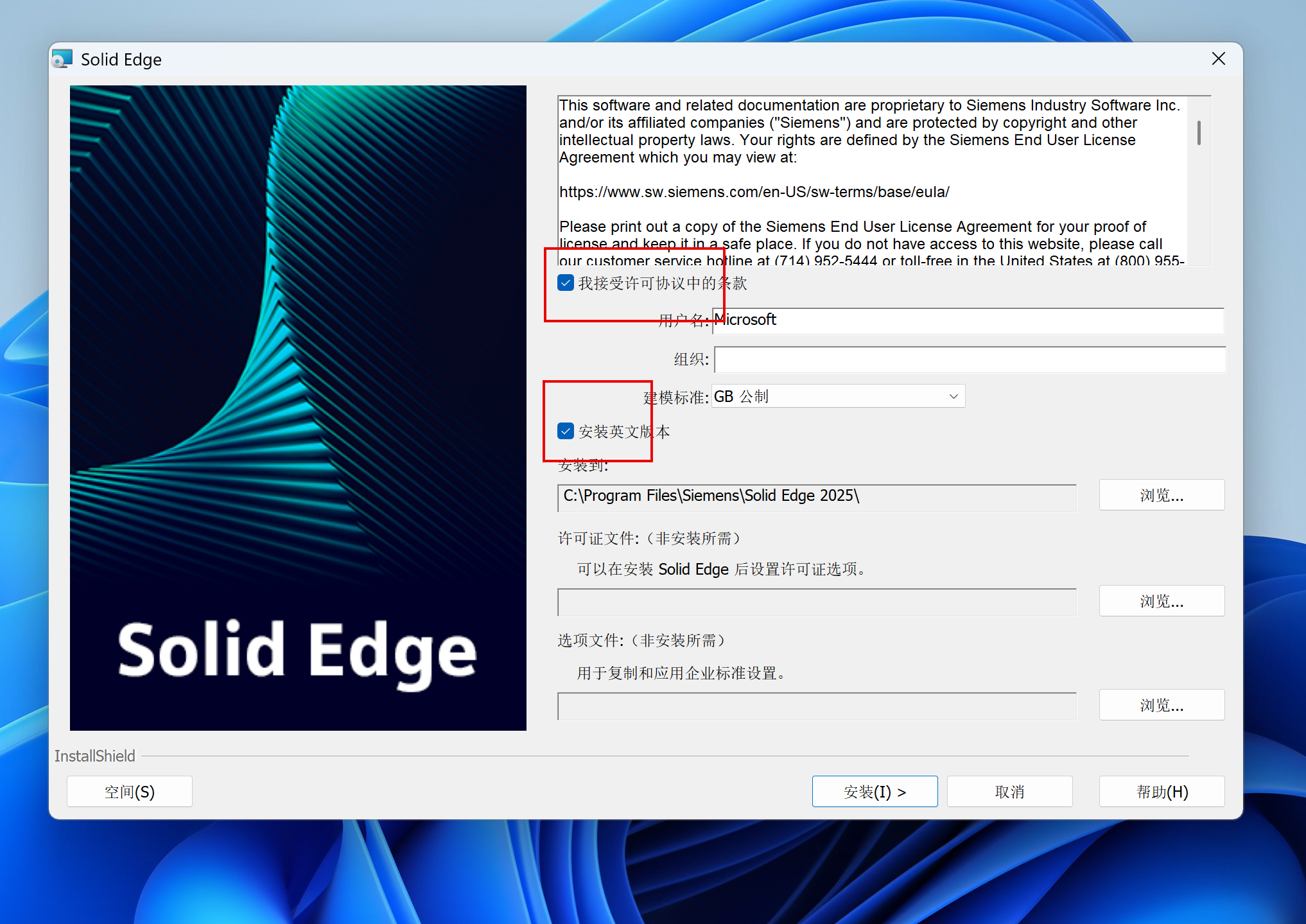 如果提示许可证,打开电脑桌面的Solid Edge 2025软件,进入界面。①选择【已有许可证文件】②点击【浏览】③找到C盘ProgramData\Siemens文件夹下的SELicense.dat打开