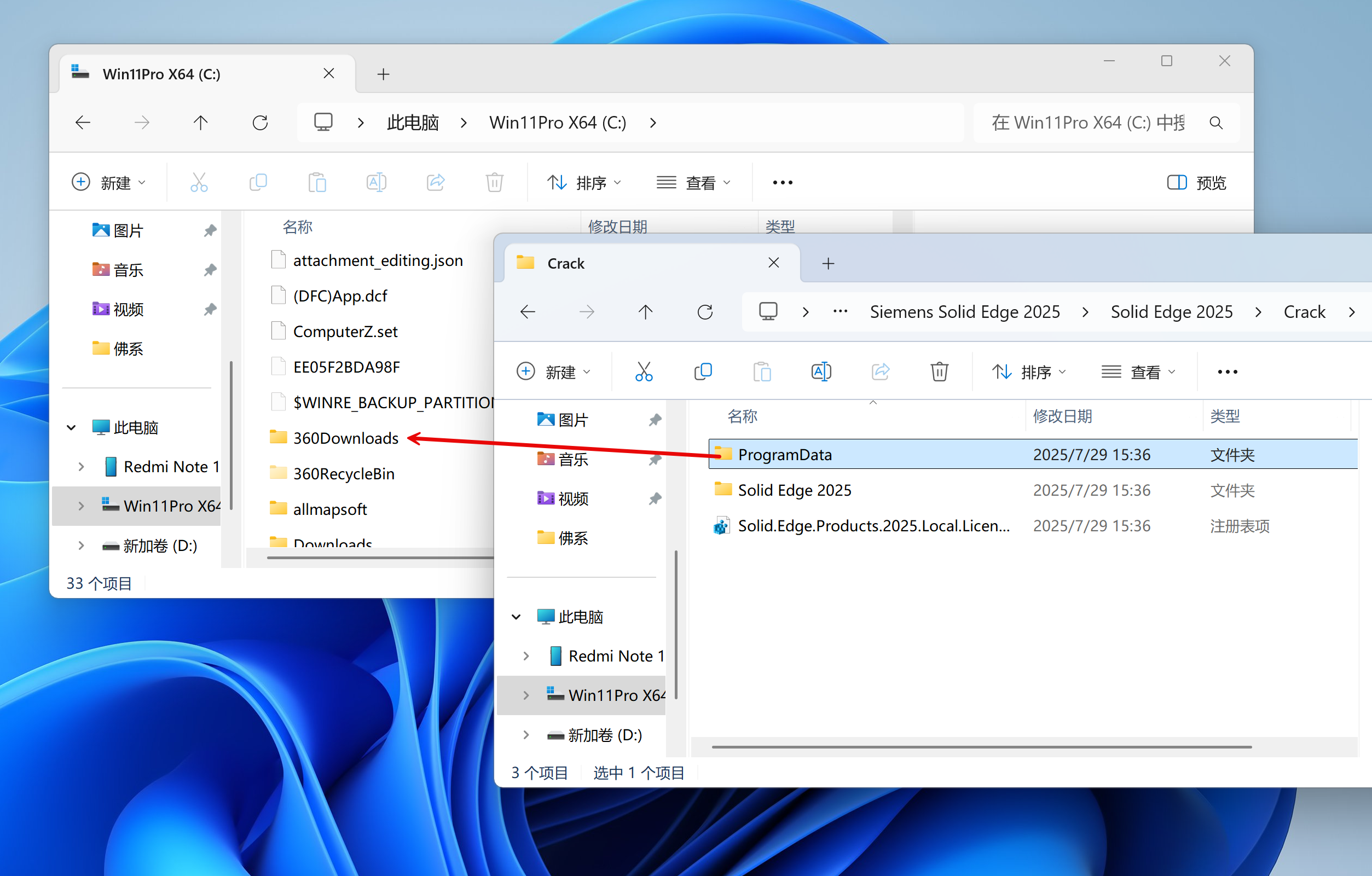打开Crack\Solid Edge 2025文件夹,复制Program文件夹到刚才后退的位置下替换目标