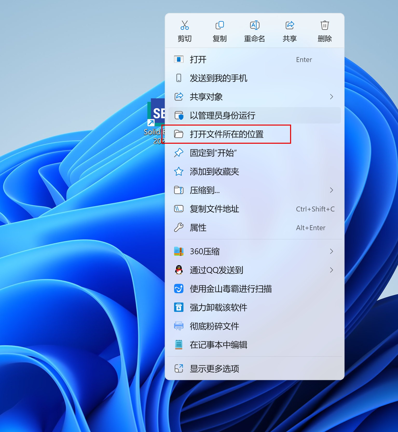 在电脑桌面找到Solid Edge 2025软件,鼠标右键打开文件所在的位置进去安装目录位置