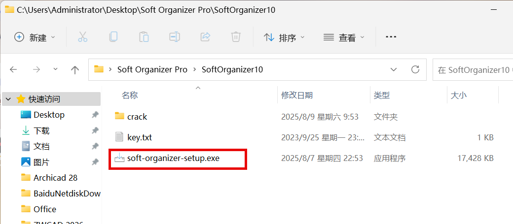 1、软件下载完成后,解压软件,点击soft-organizer-setup进行安装。