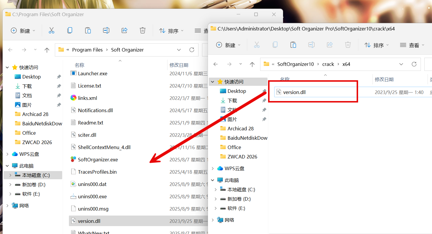 3、将Crack文件夹中的破解补丁,复制安装目录,并替换。