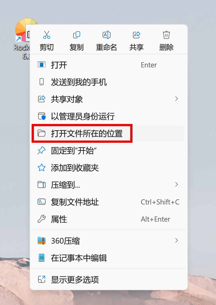 2、找到桌面软件右键选择“打开文件所在的位置”。