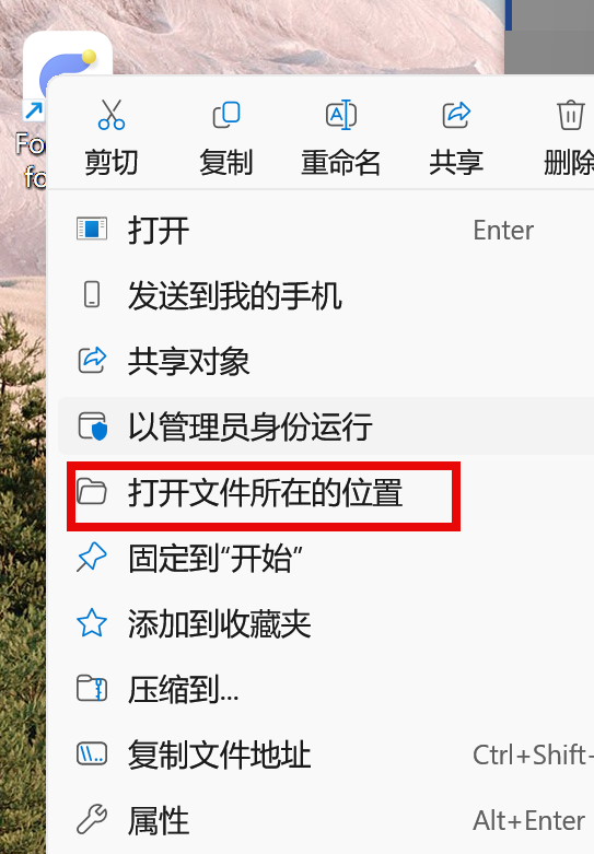 2、鼠标右键点击FoneLab FoneTrans for iOS桌面图标打开文件所在位置。