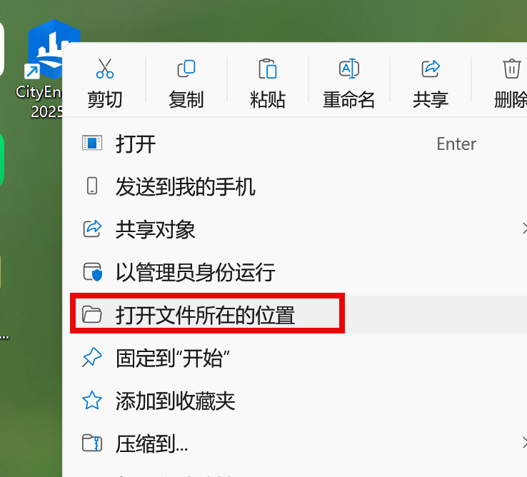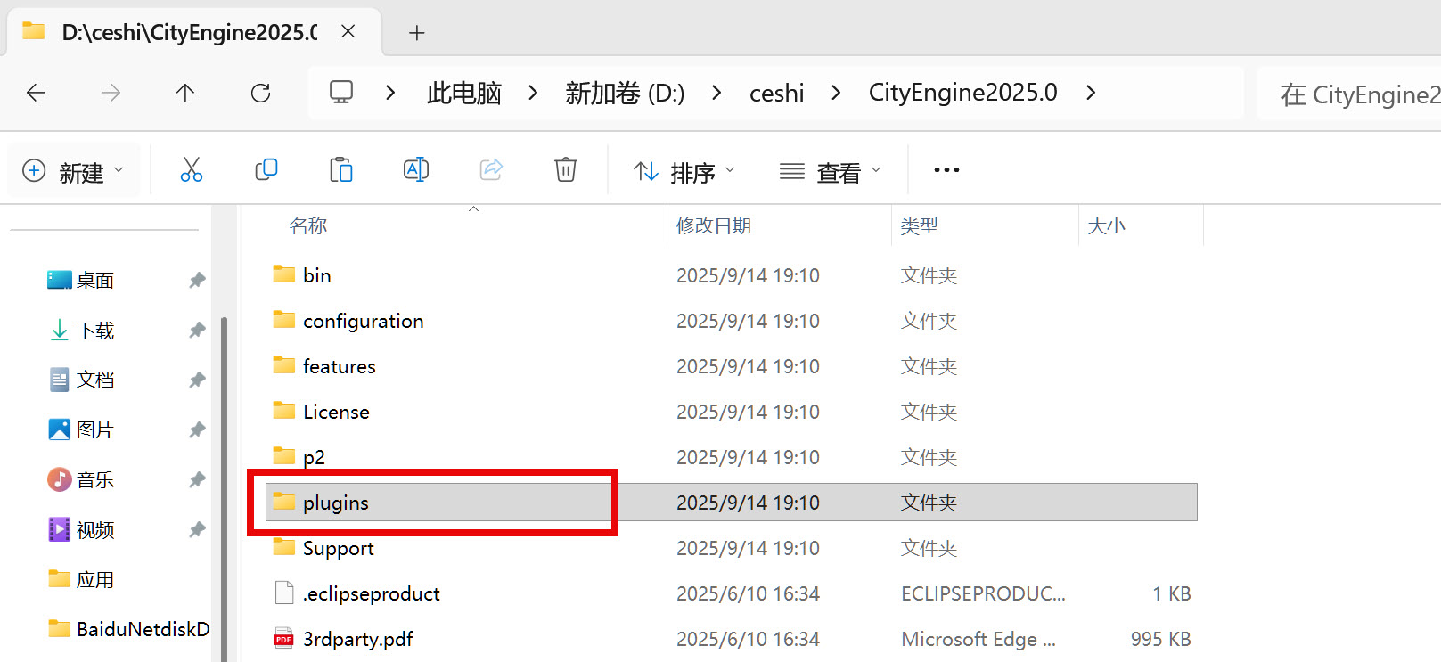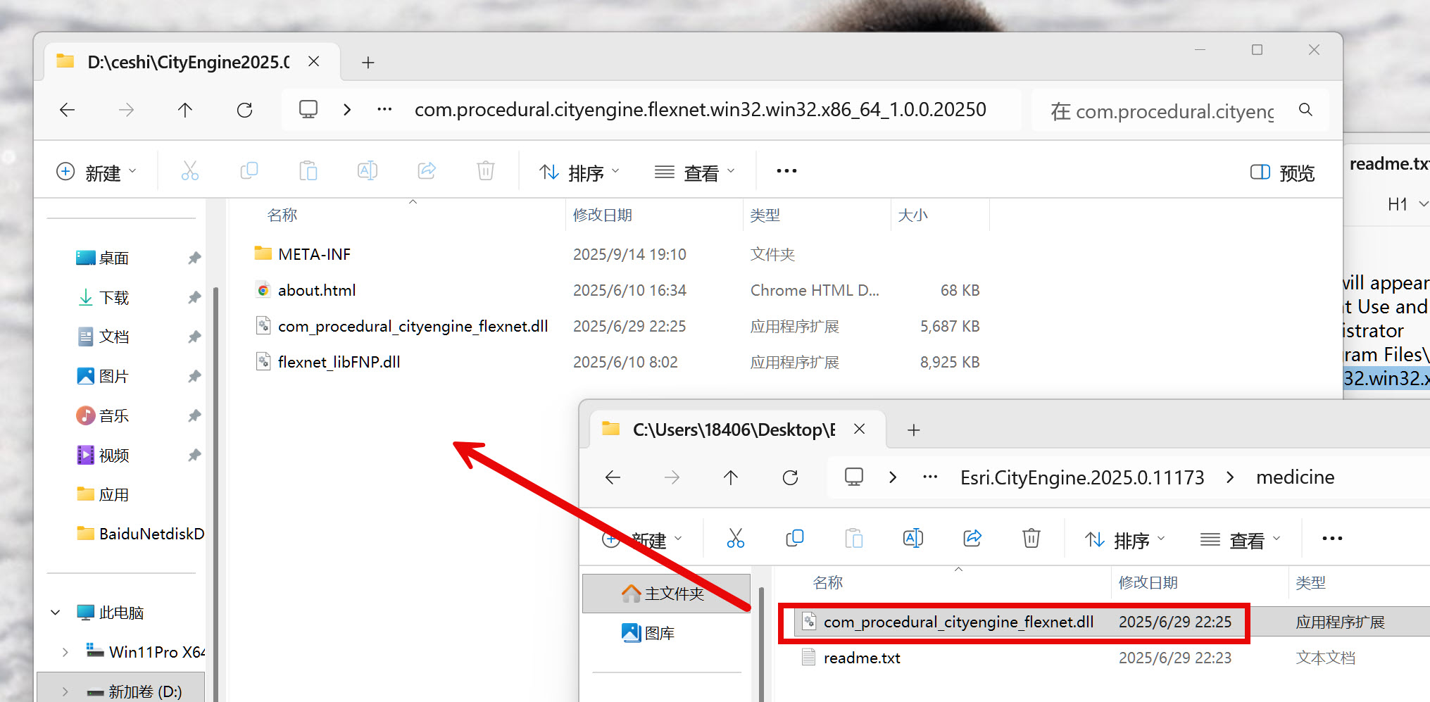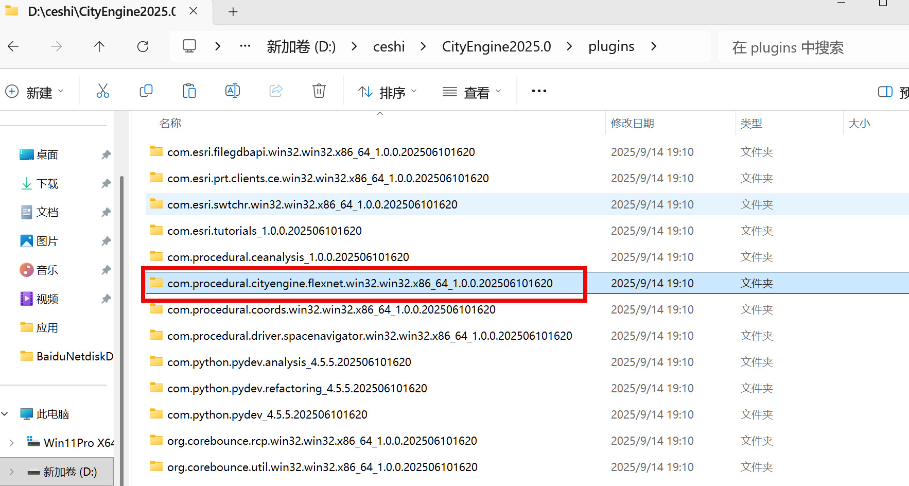 2、在桌面找到软件图标鼠标右键打开文件所在位置,依次打开plugins文件夹,再打开com.procedural.cityengine.flexnet.win32.win32.x86_64_1.0.0.202506101620文件夹(默认目录为C:\Program Files\ArcGIS\CityEngine2025.0\plugins\com.procedural.cityengine.flexnet.win32.win32.x86_64_1.0.0.202506101620)。
