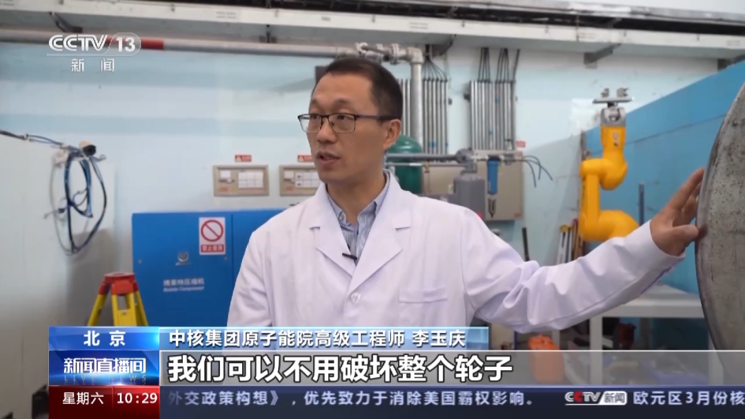 中核集团原子能院高级工程师李玉庆介绍,我们可以不用破坏整个轮子,然后测到深度大概40毫米距离的深部的应力的分布。中子最大的特点就是无损检测。
