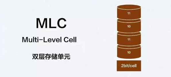 MLC 一个储存单元内可容纳 2bit 数据,即 2bit/cell。